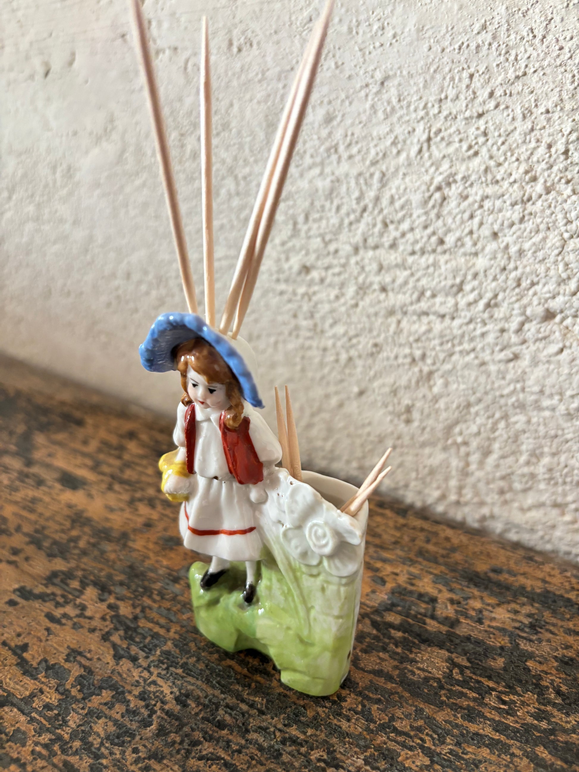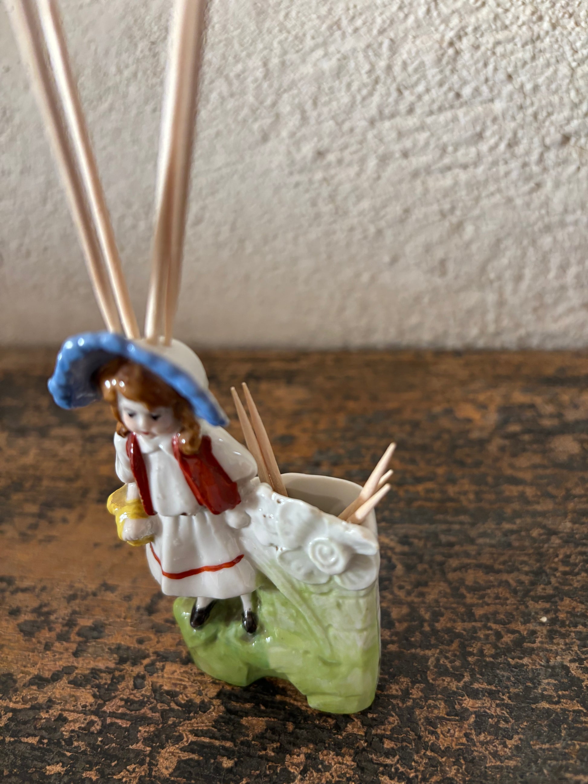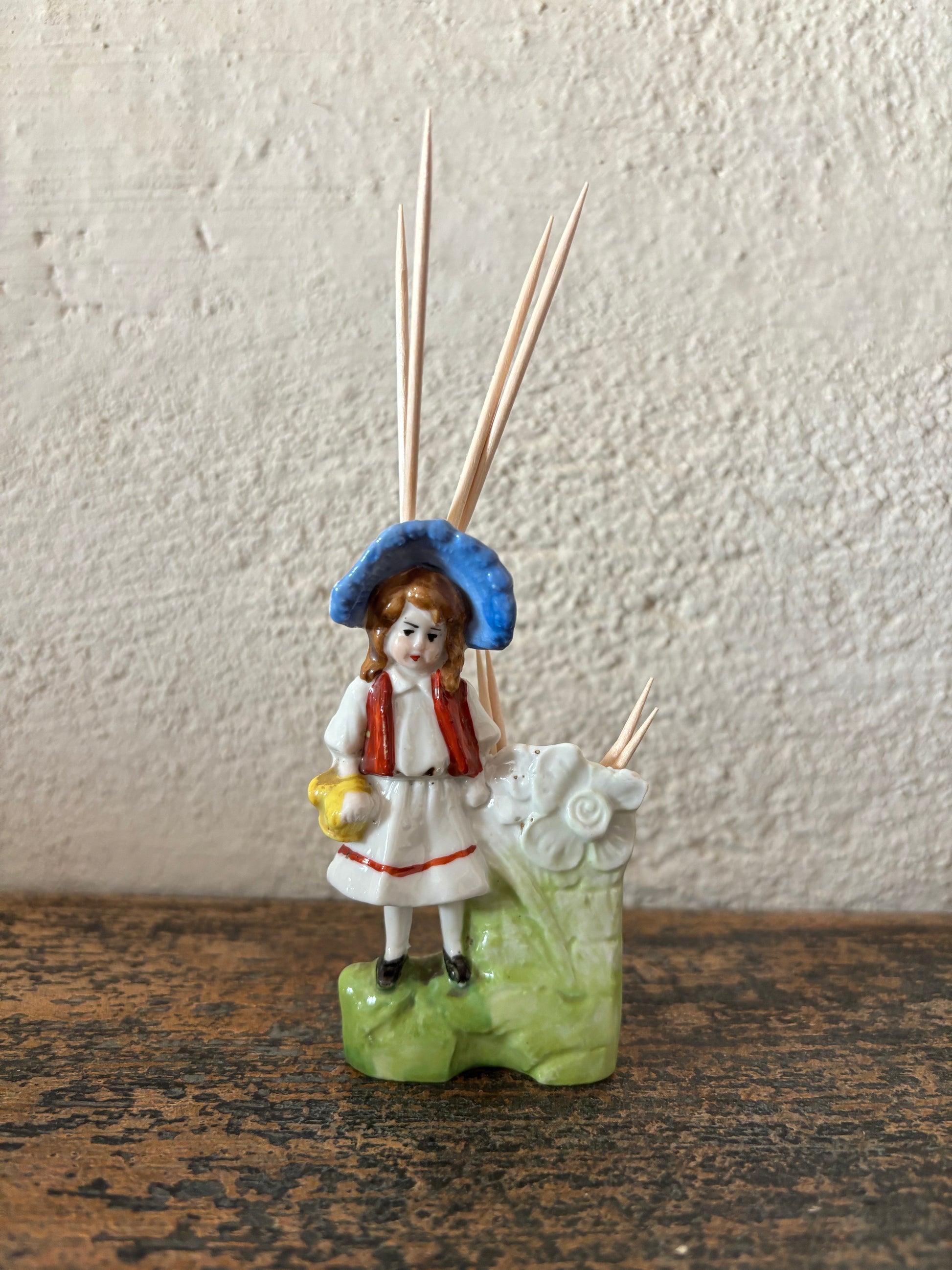 Palillero alemán hecho en porcelana biscut esmaltado,pintado a mano, principios del siglo XX. Pieza numerada 7128.