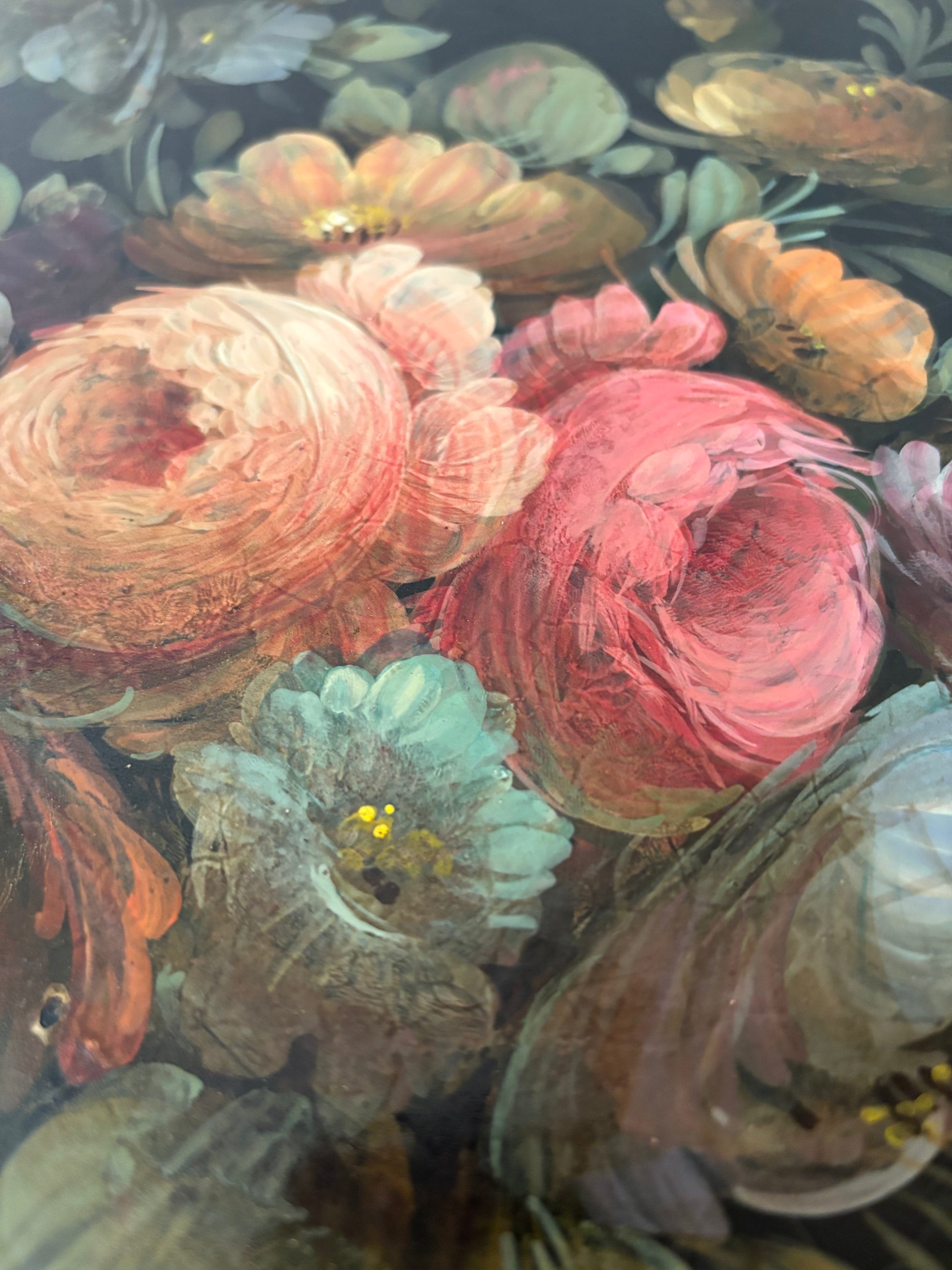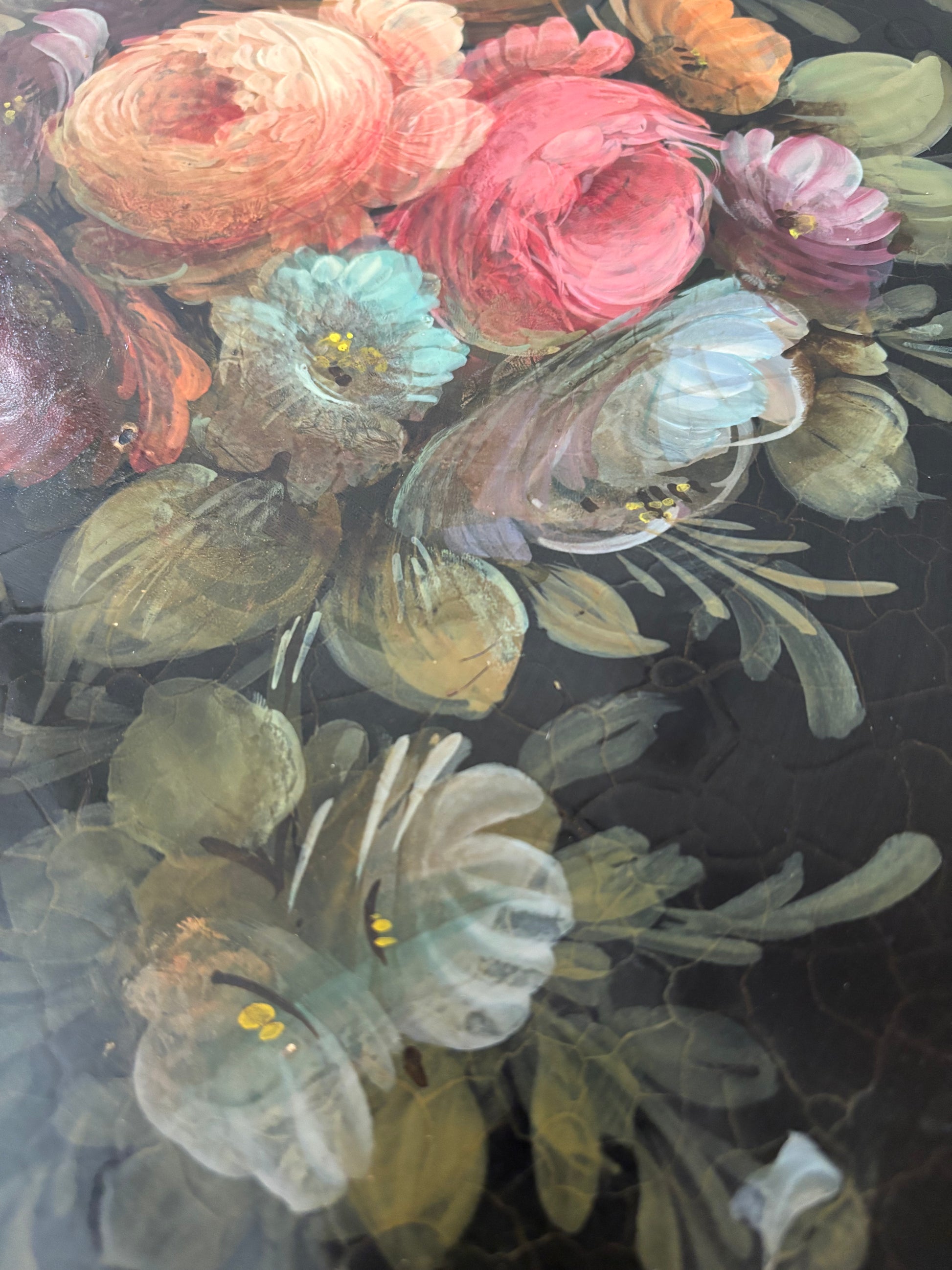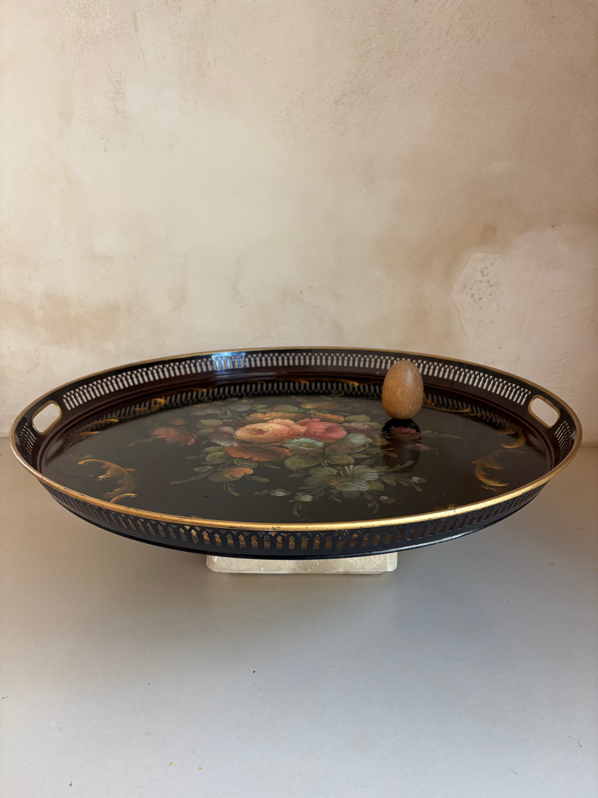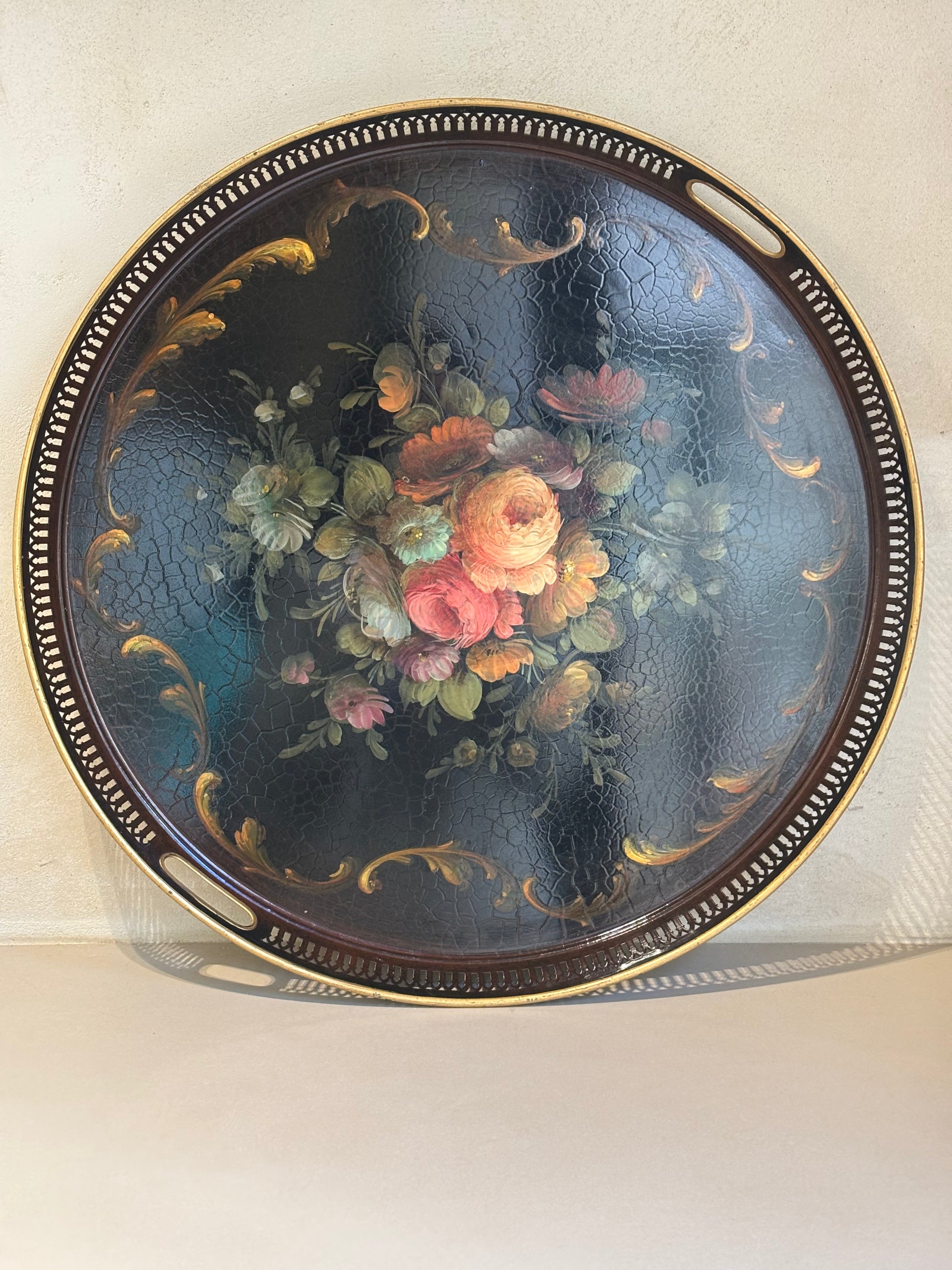 Antigua bandeja de chapa metálica Isabelina, principios del siglo XX. pintada al oleo a mano.
