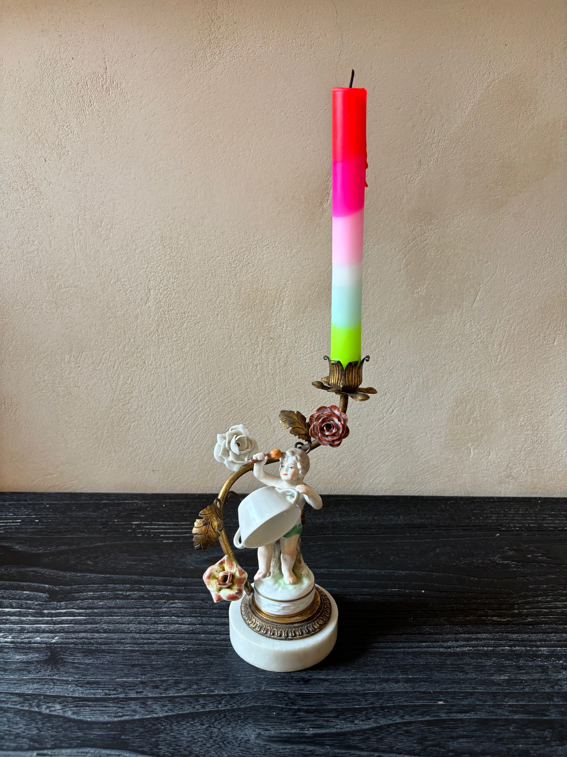 CANDELABRO ANTIGUO PORCELANA-BRONCE.