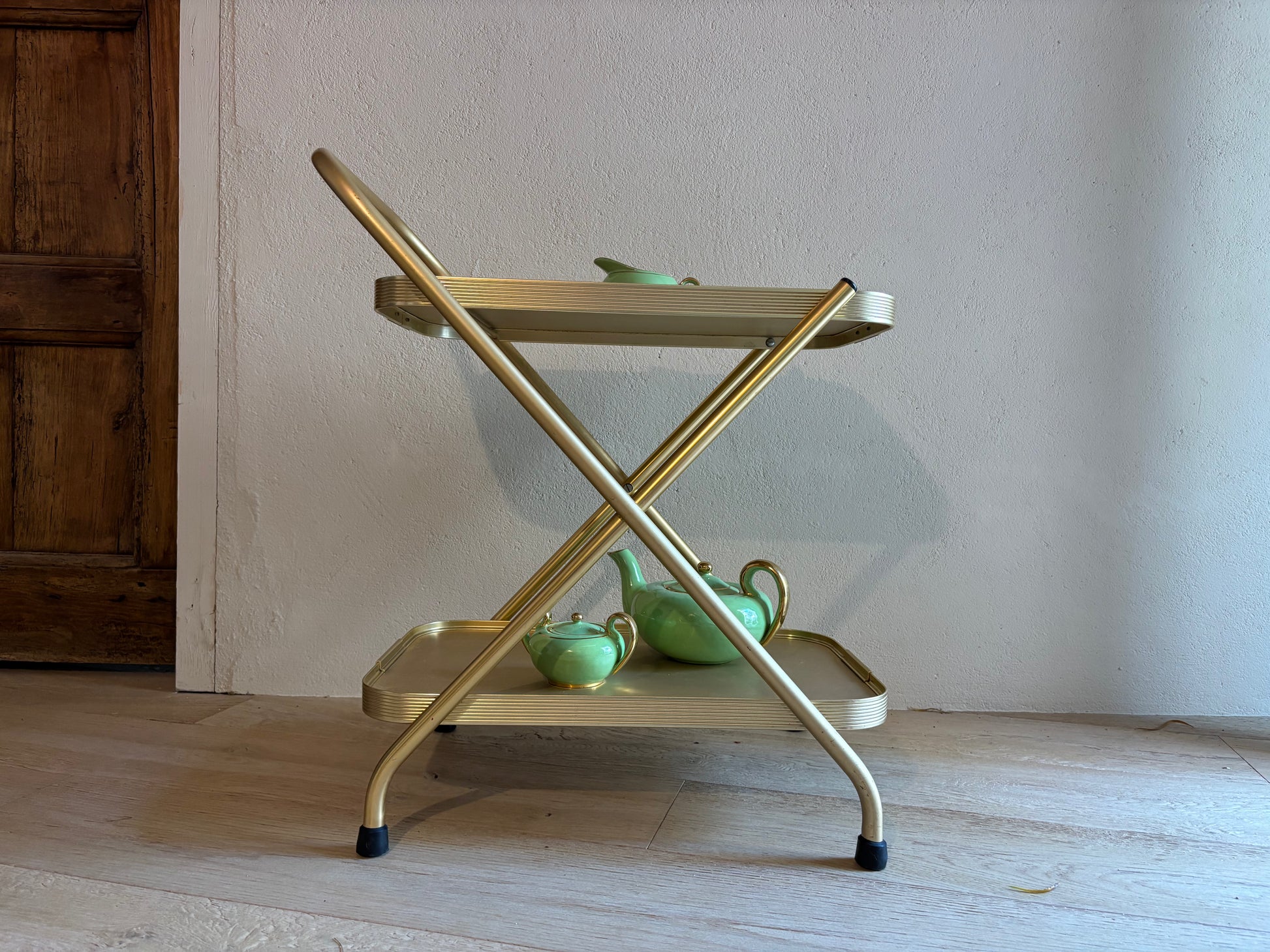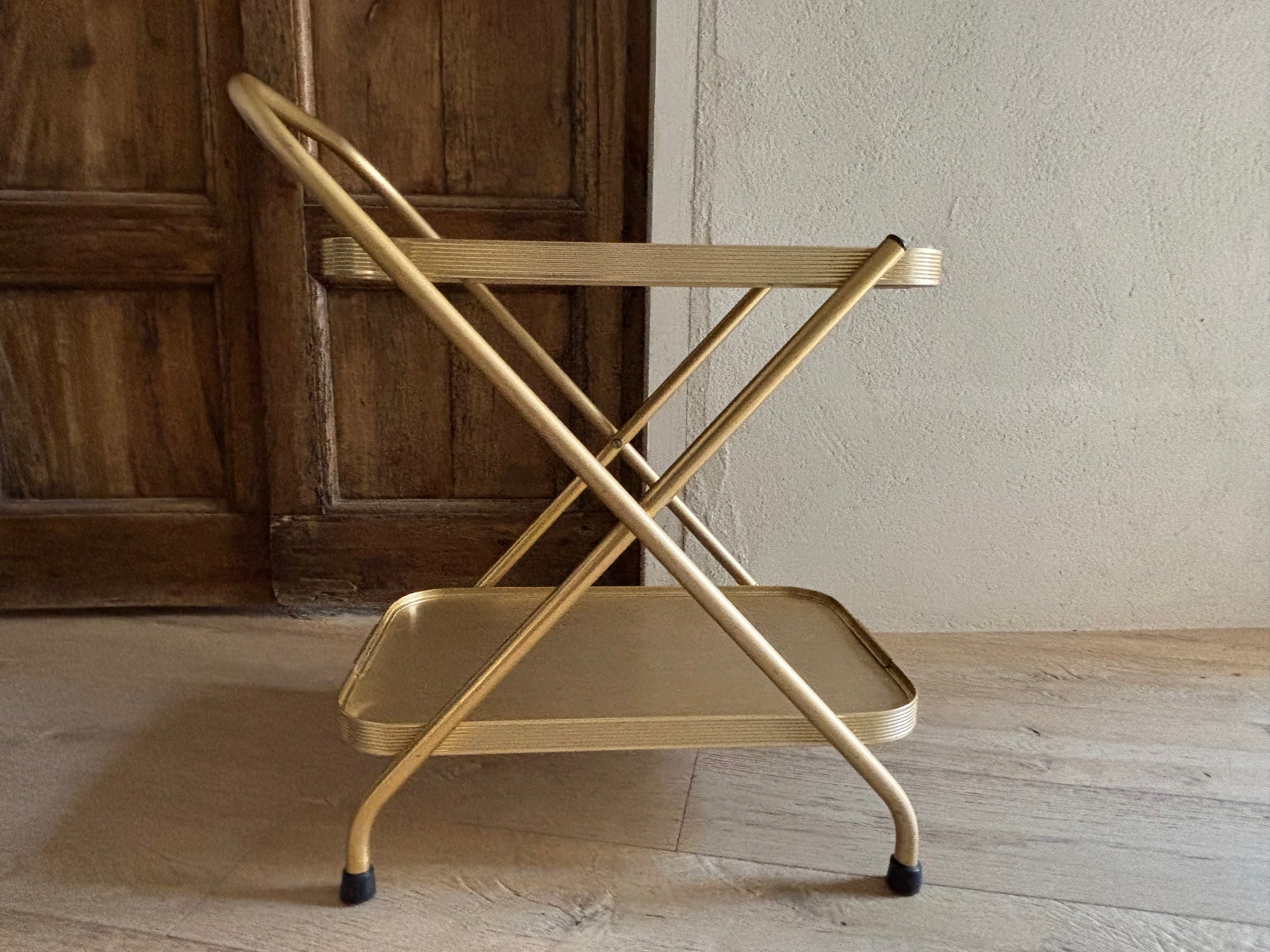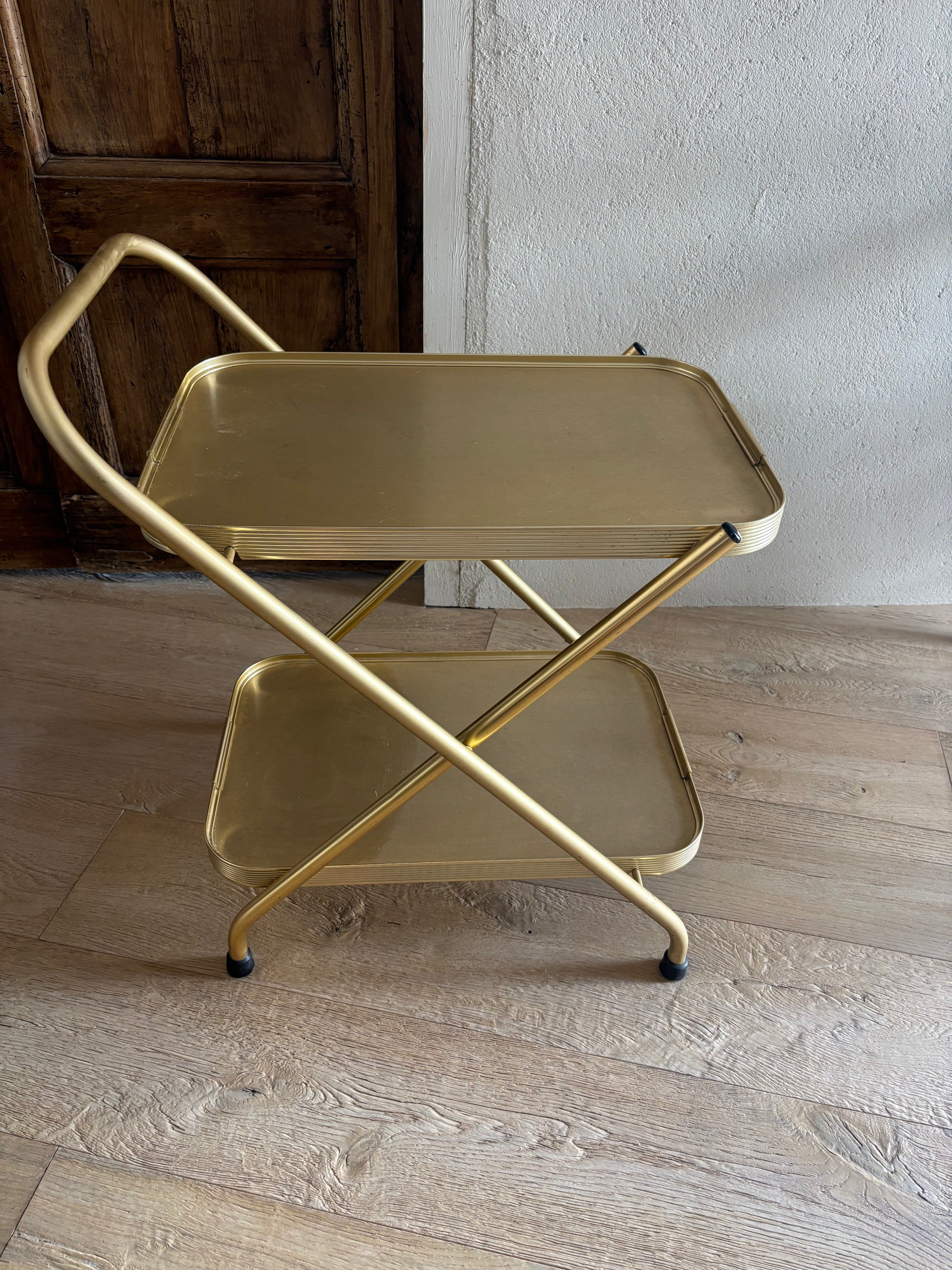 Carrito de servicio Mid-Century de aluminio anodizado, plegable (dimensiones plegable 85 cm x 41,5 cm x 10 cm).