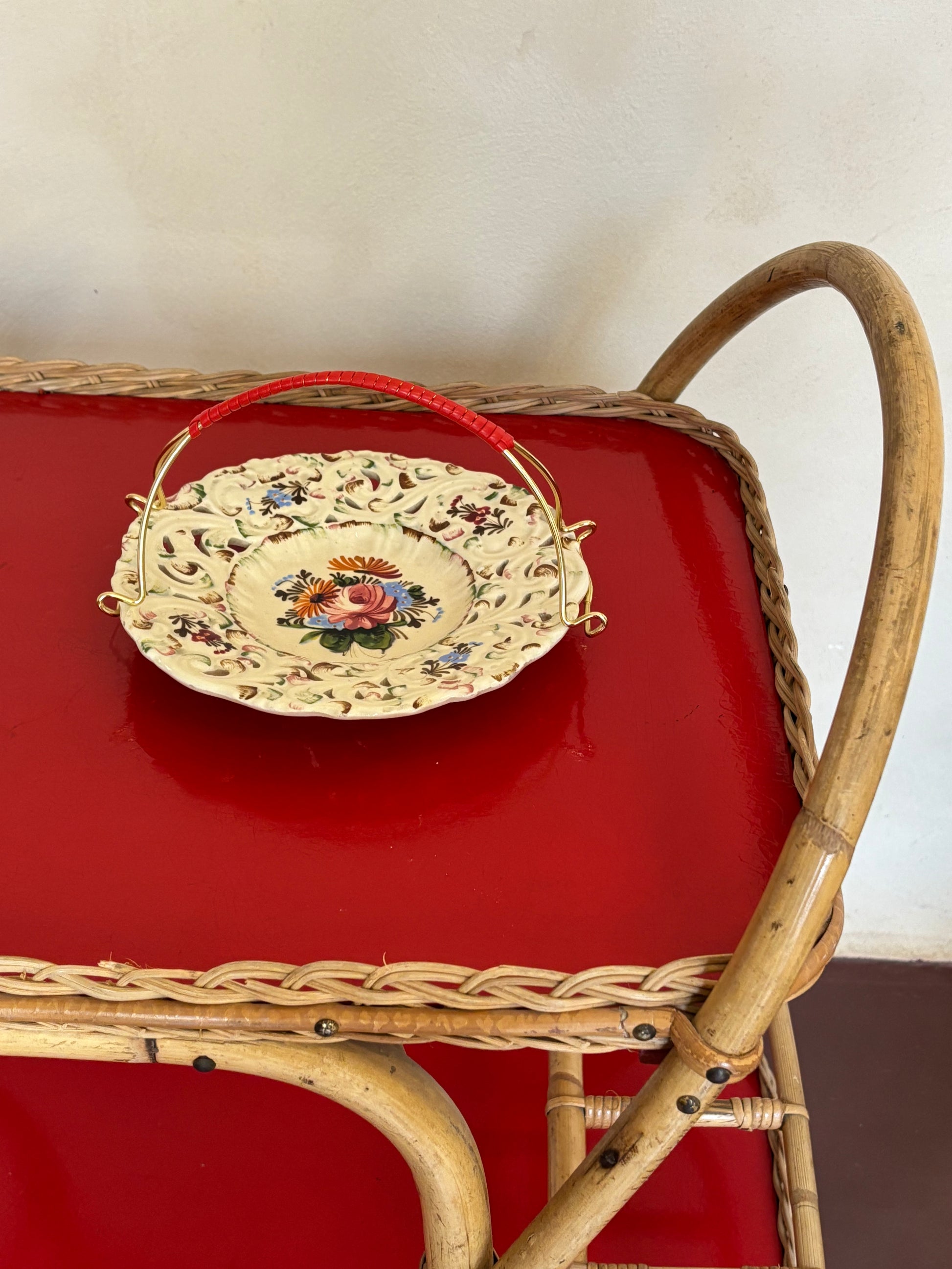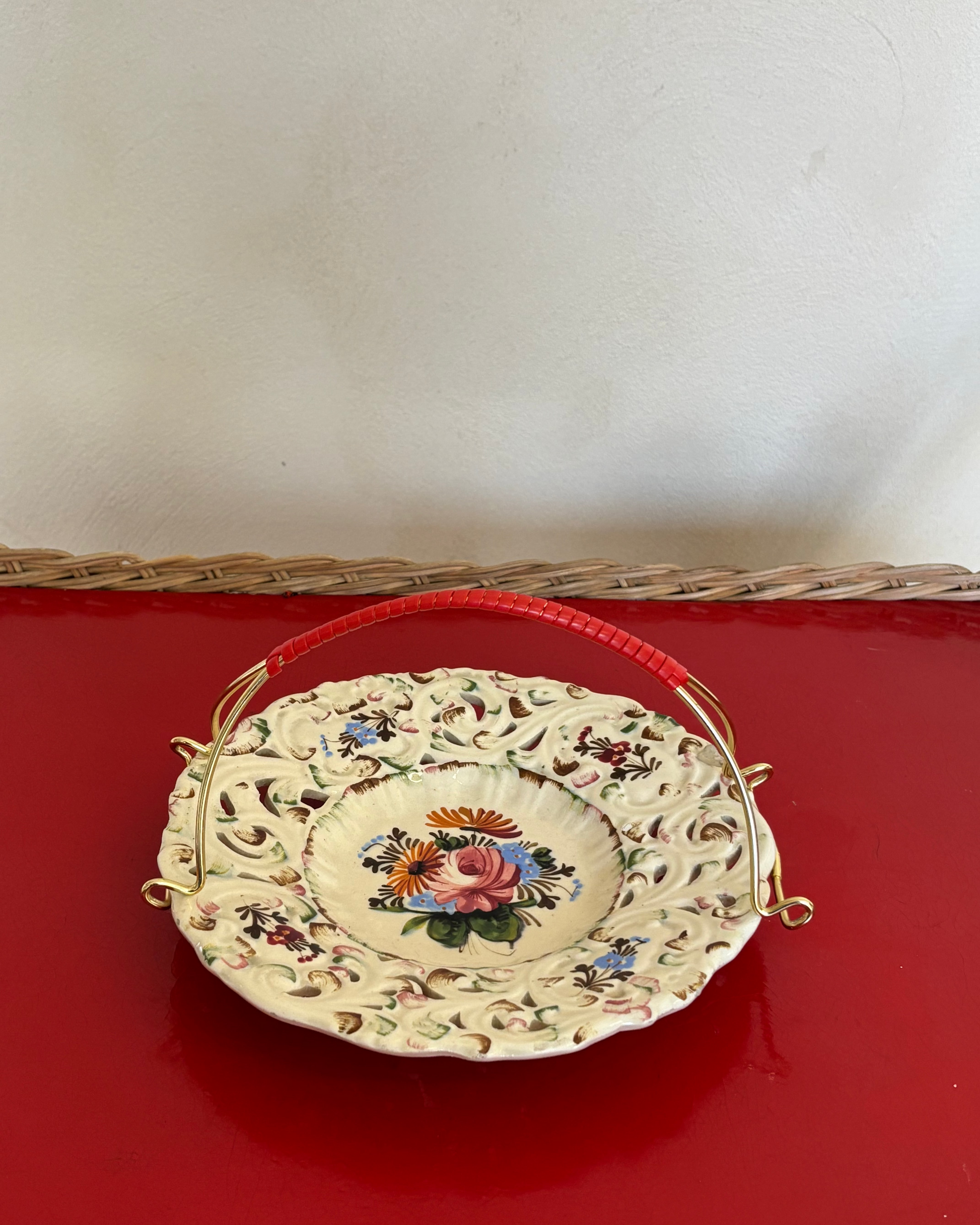 CESTA-PLATO VINTAGE DE MAYÓLICA CON ASA.