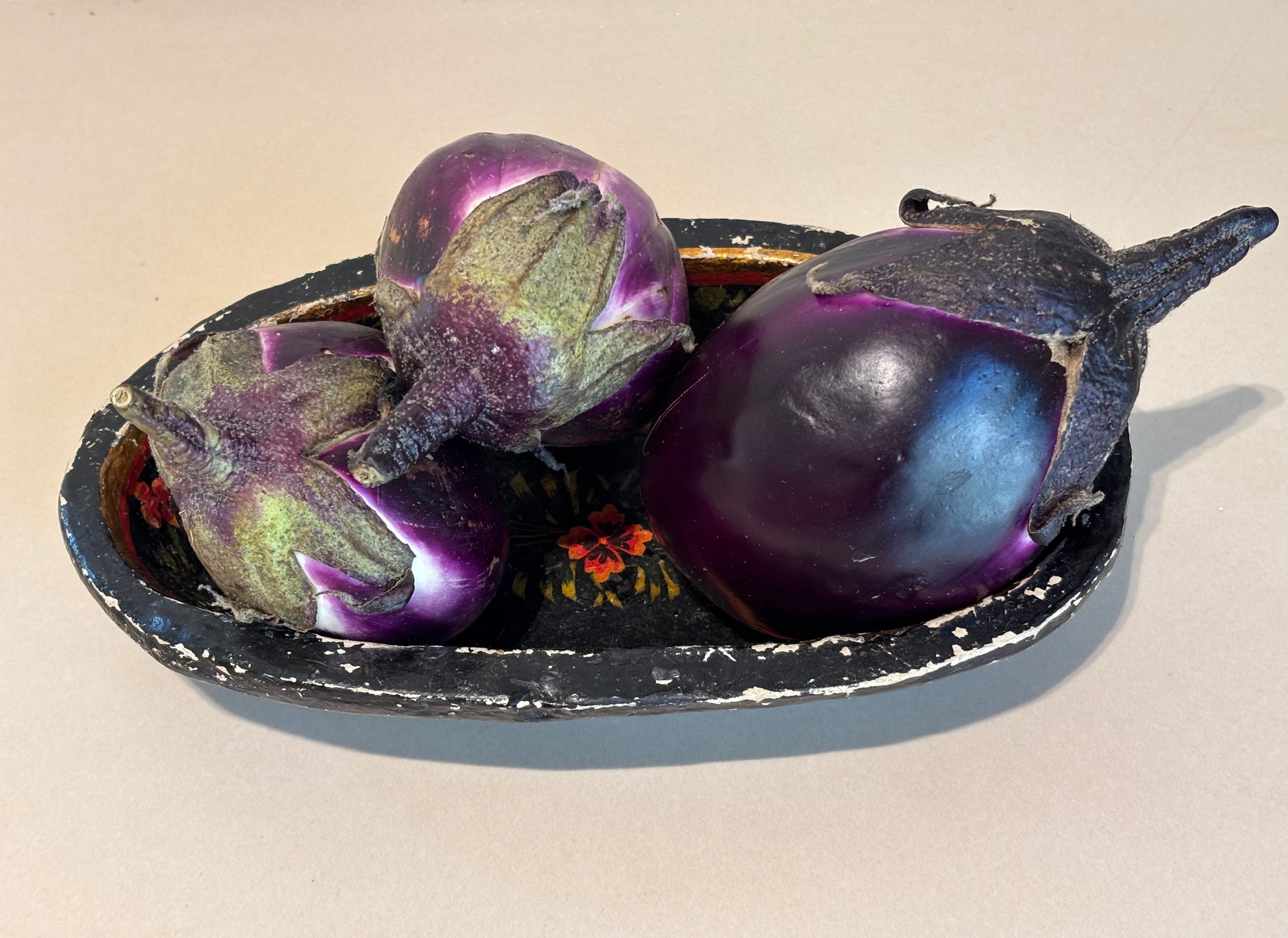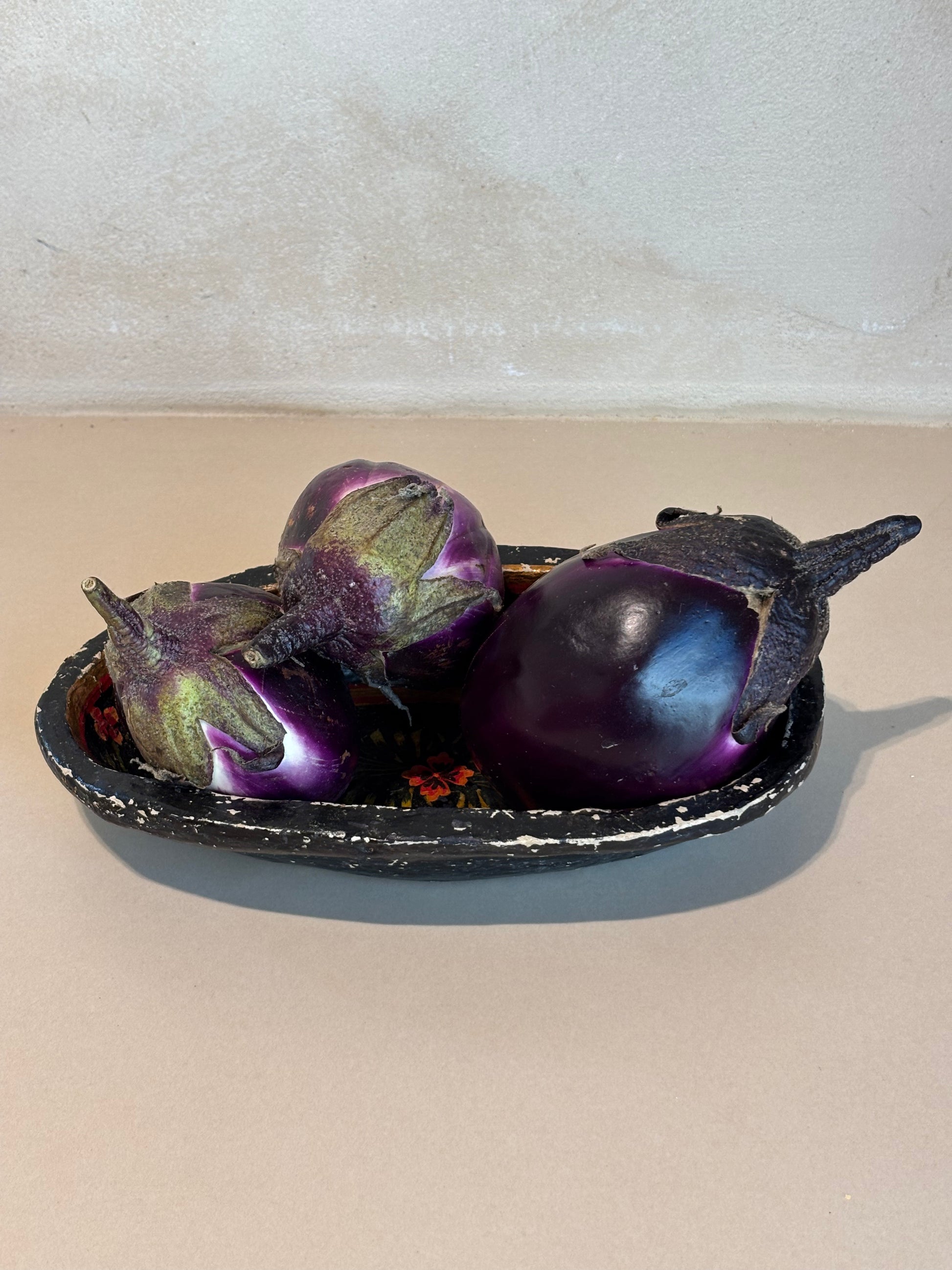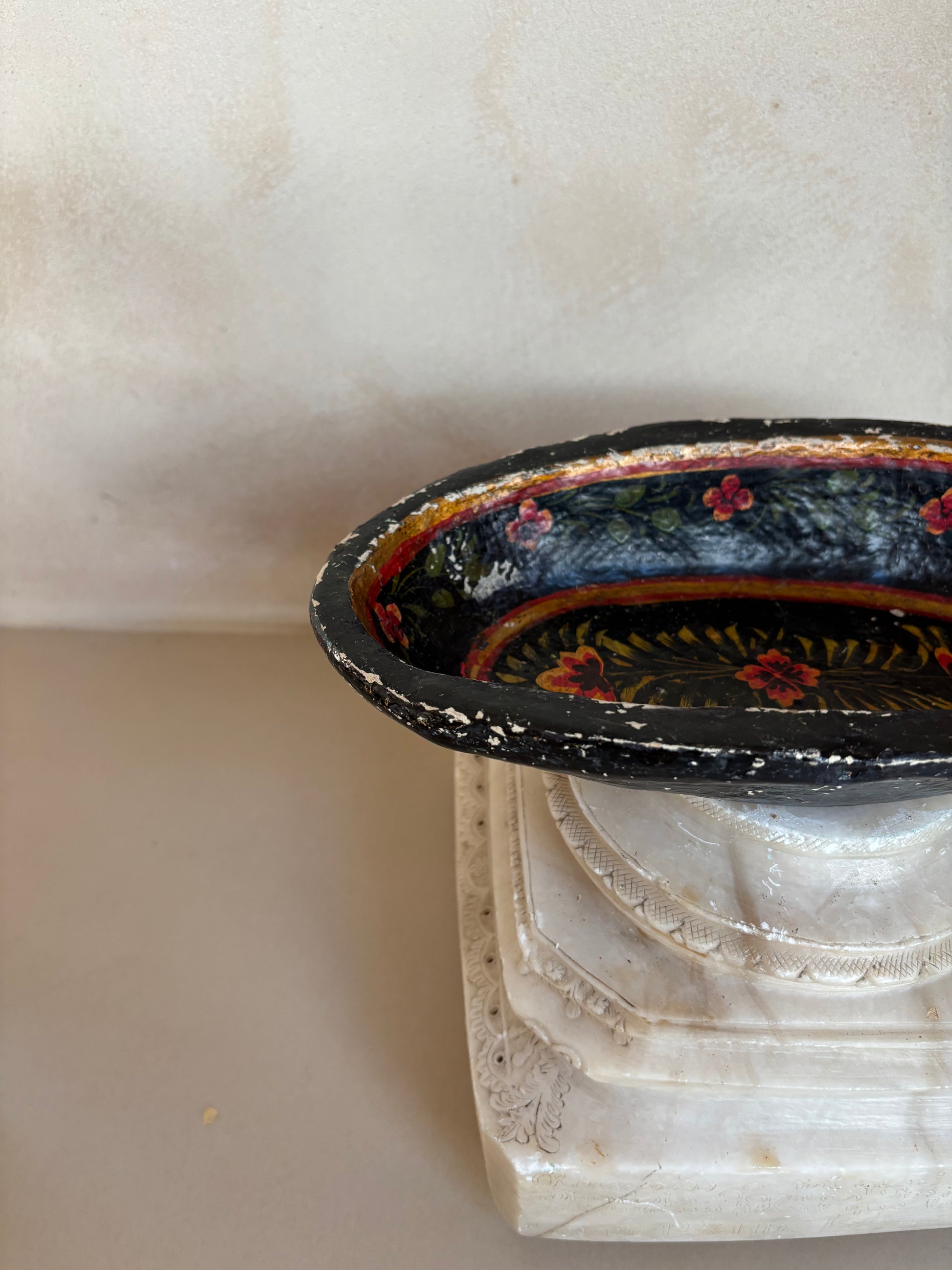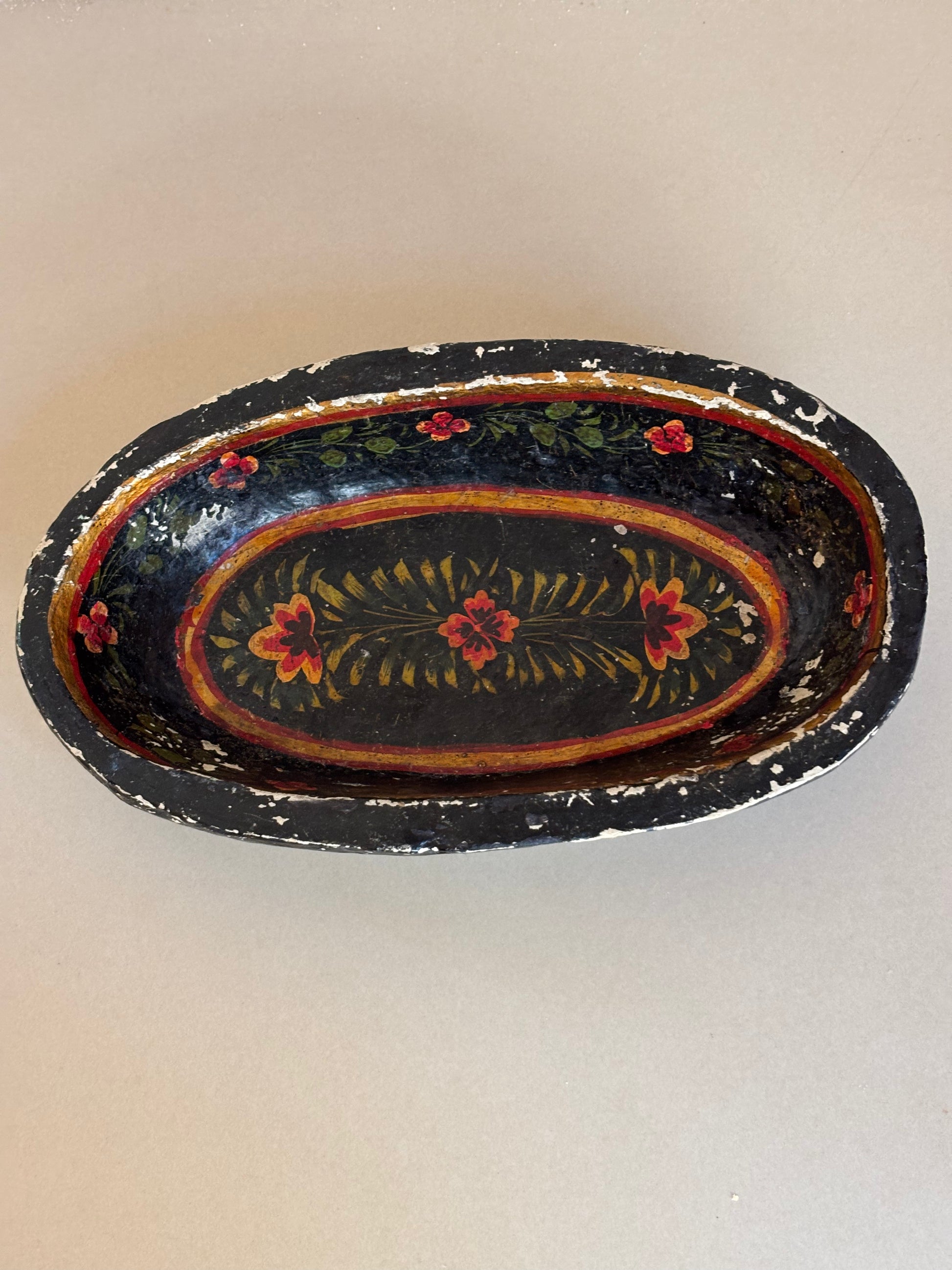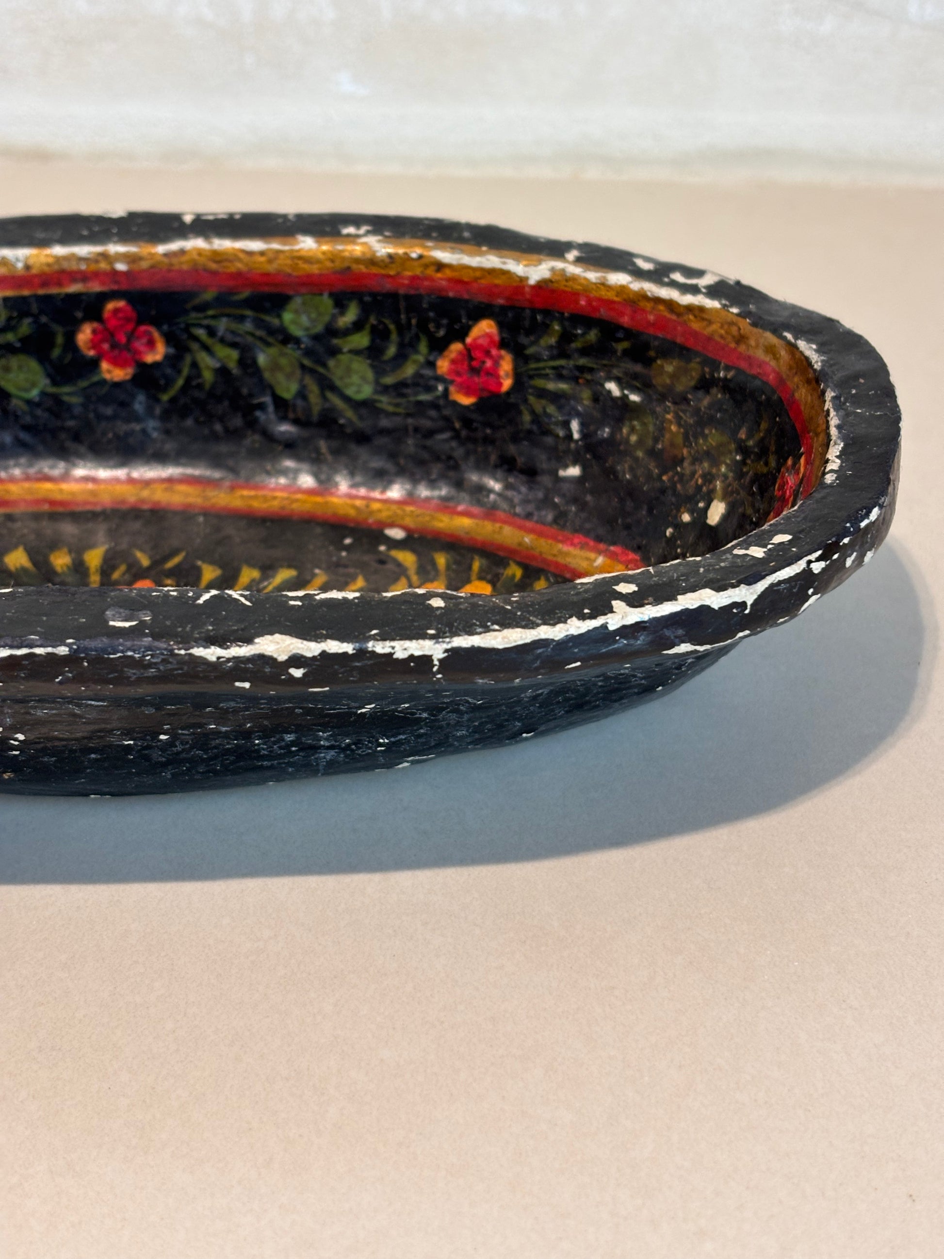 Cuenco antiguo ovalado de papel maché de arte popular mexicano vintage.