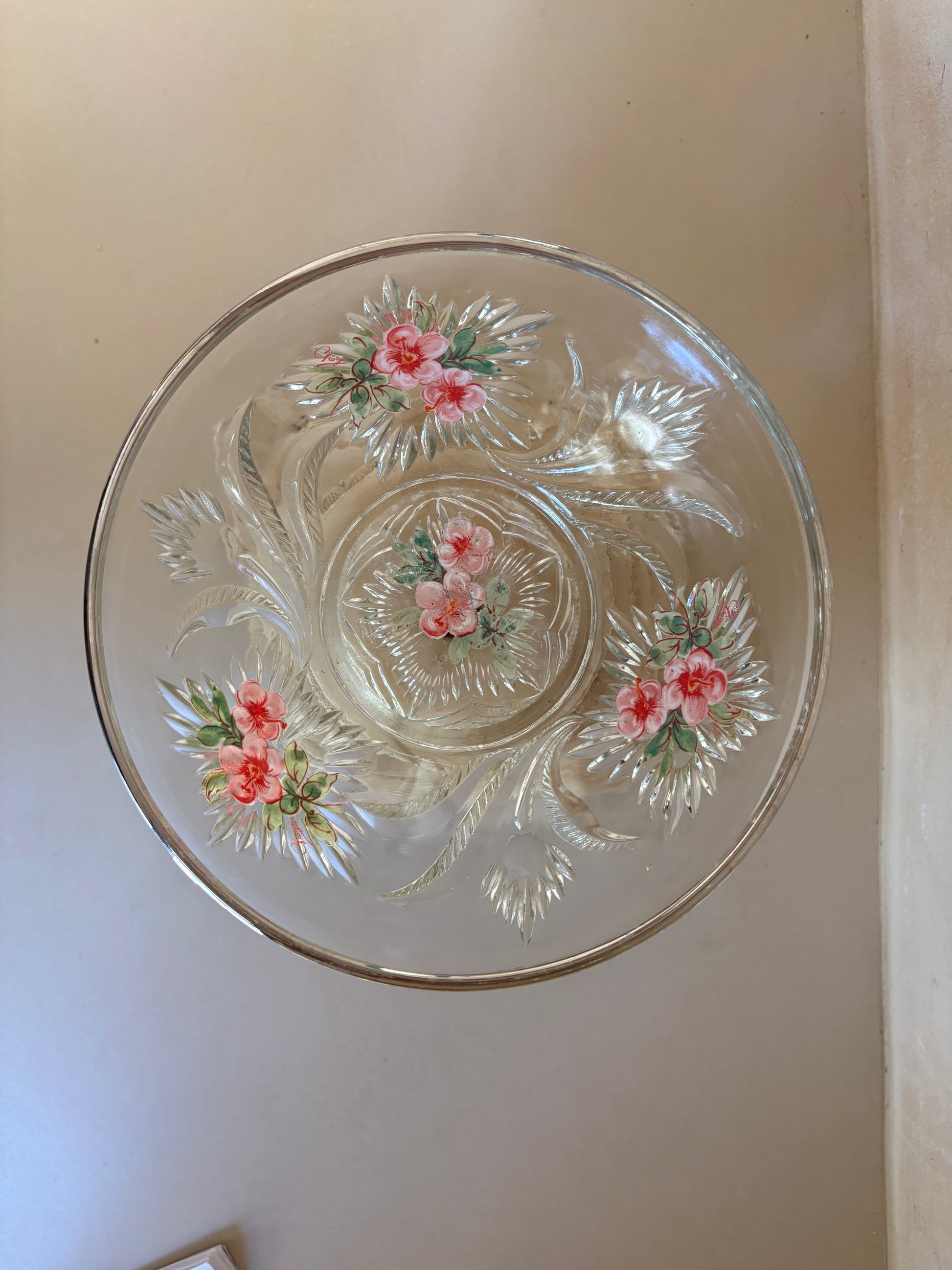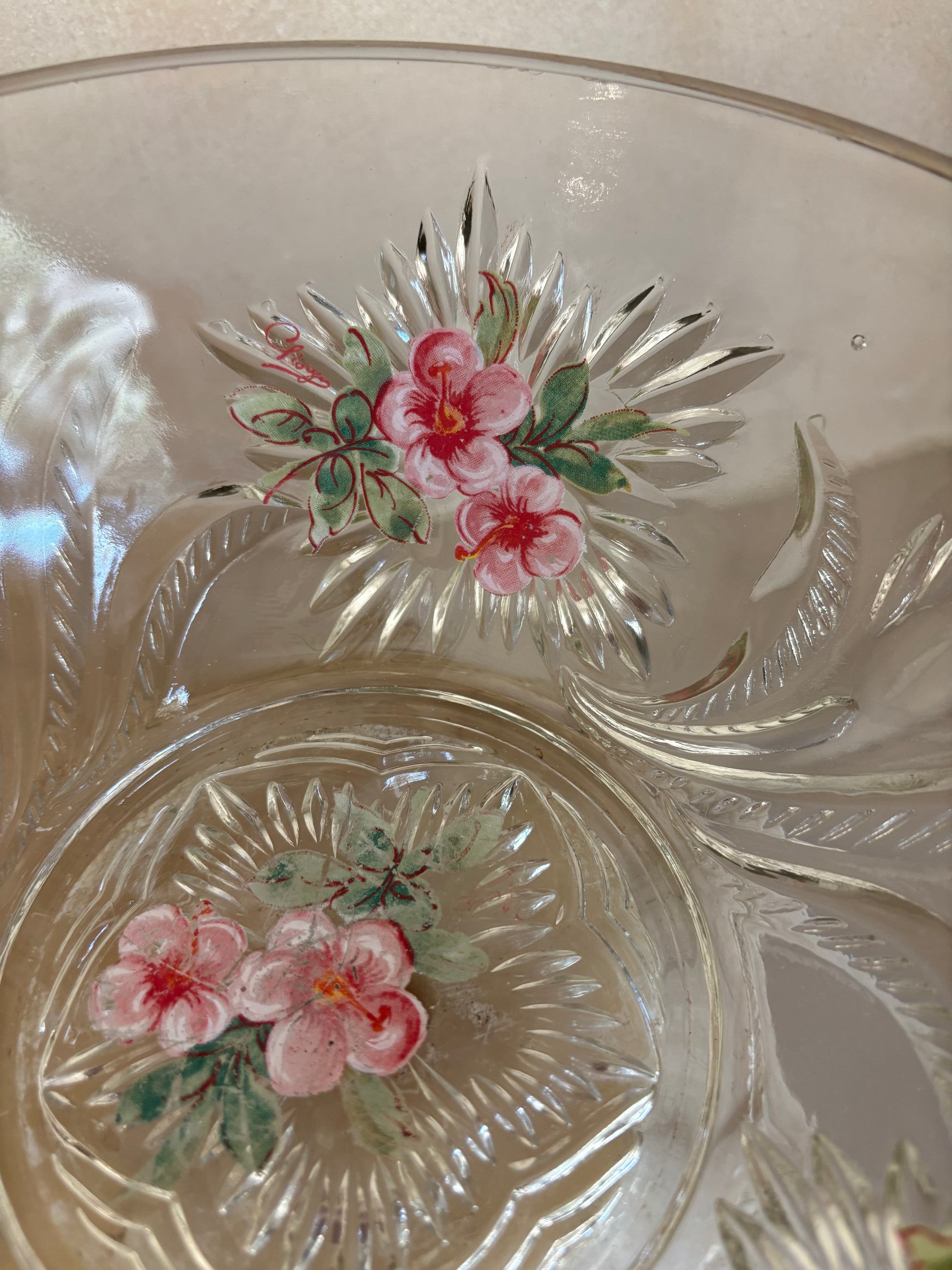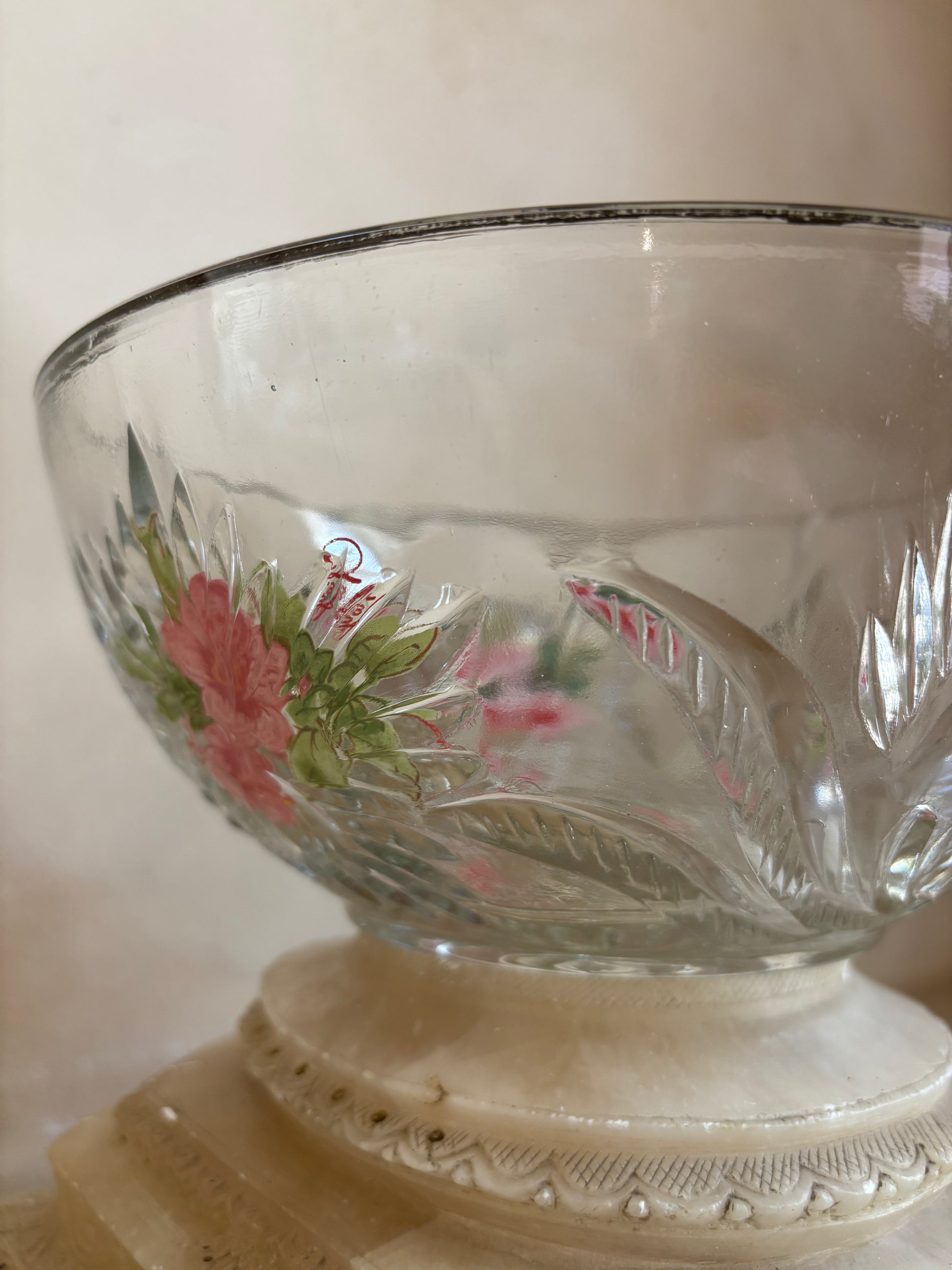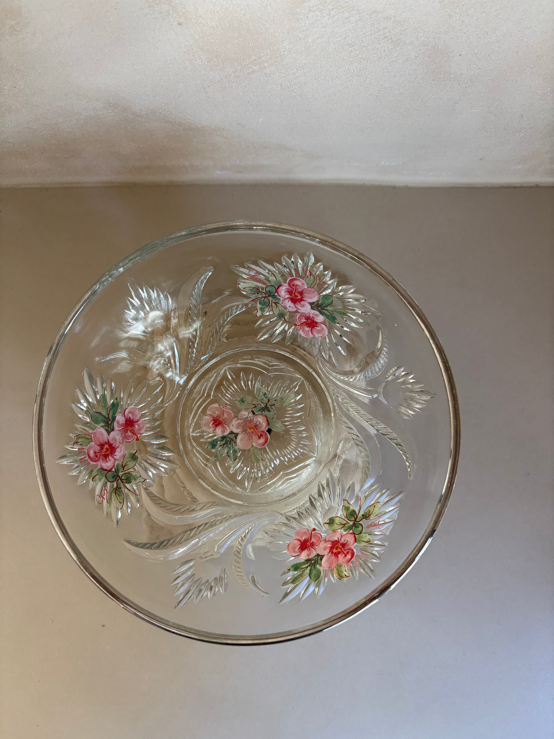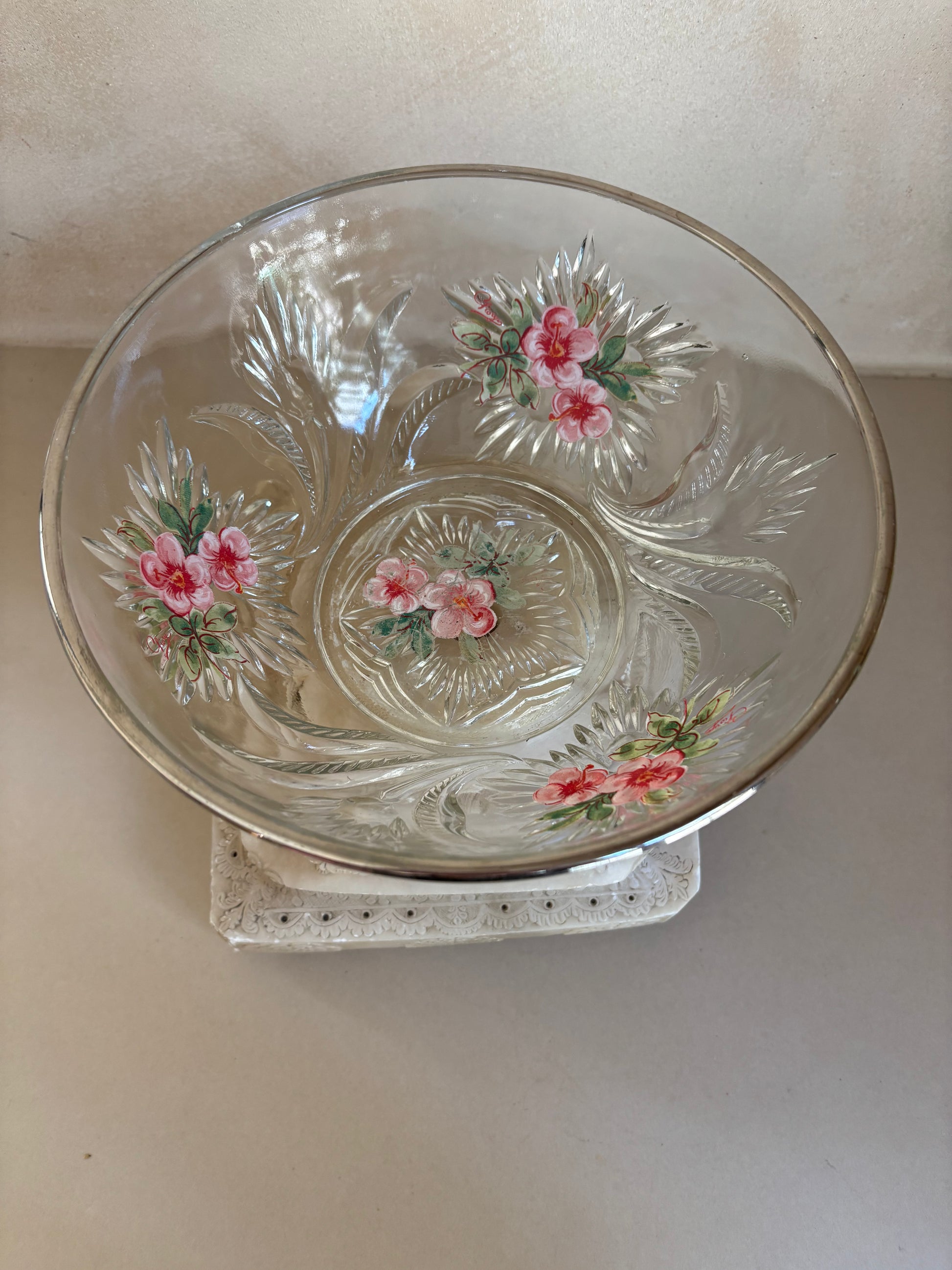 Cuenco vintage en vidrio prensado transparente, con relieves en el mismo vidrio.