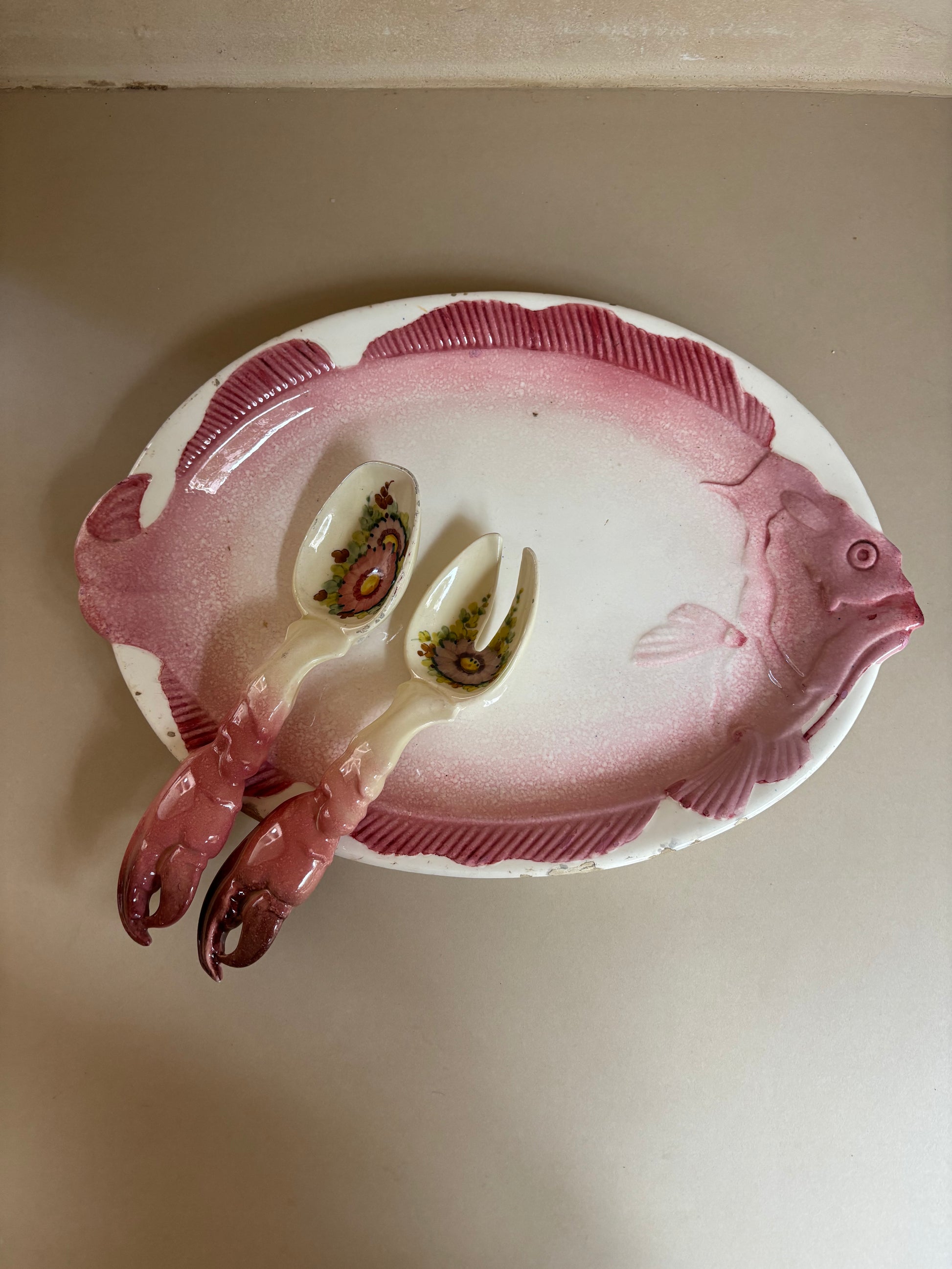 FUENTE DE LOZA EN FORMA DE PEZ PRINCIPIOS SIGLO XX.
