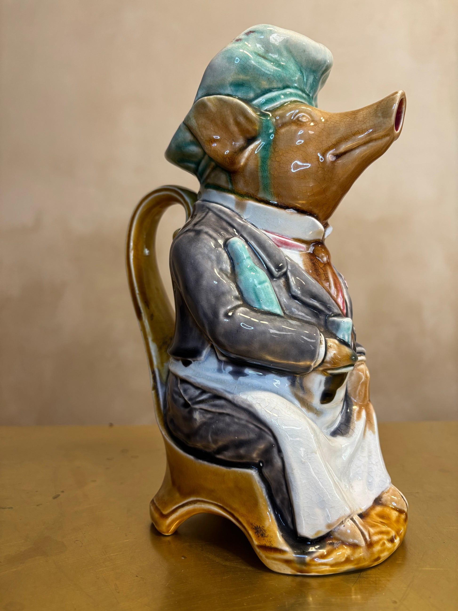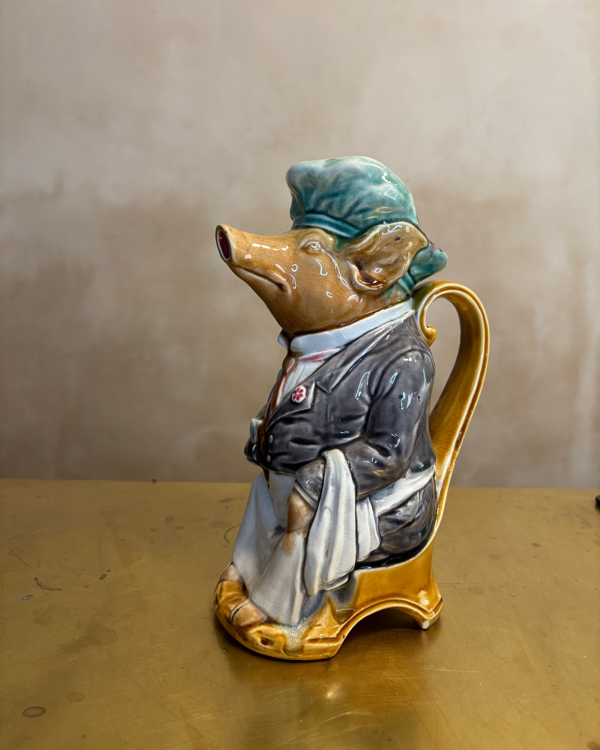 Jarra antigua "Maitre d´Hotel" barbotine, pintada a mano por Onnaing de GRIJZER.