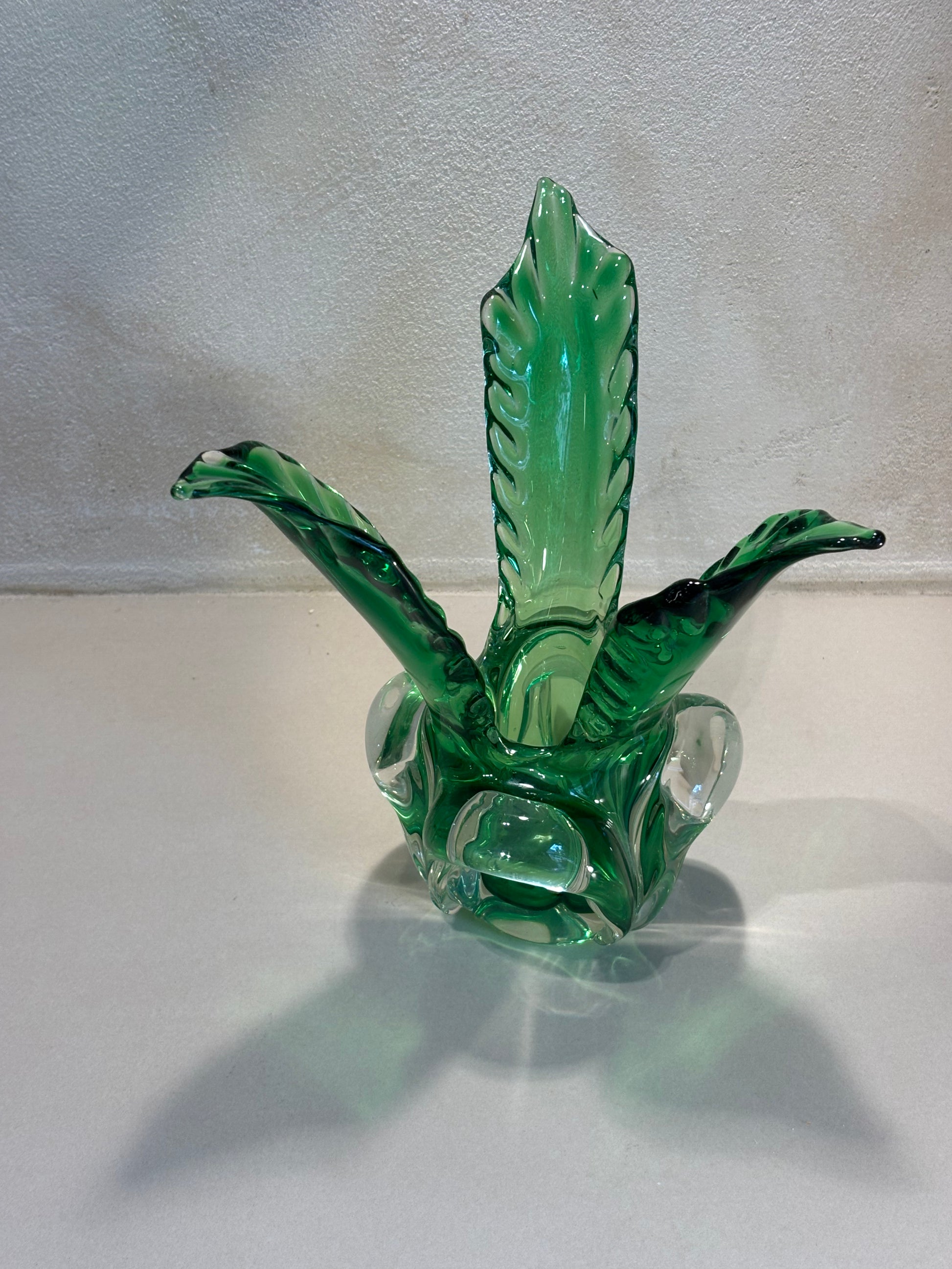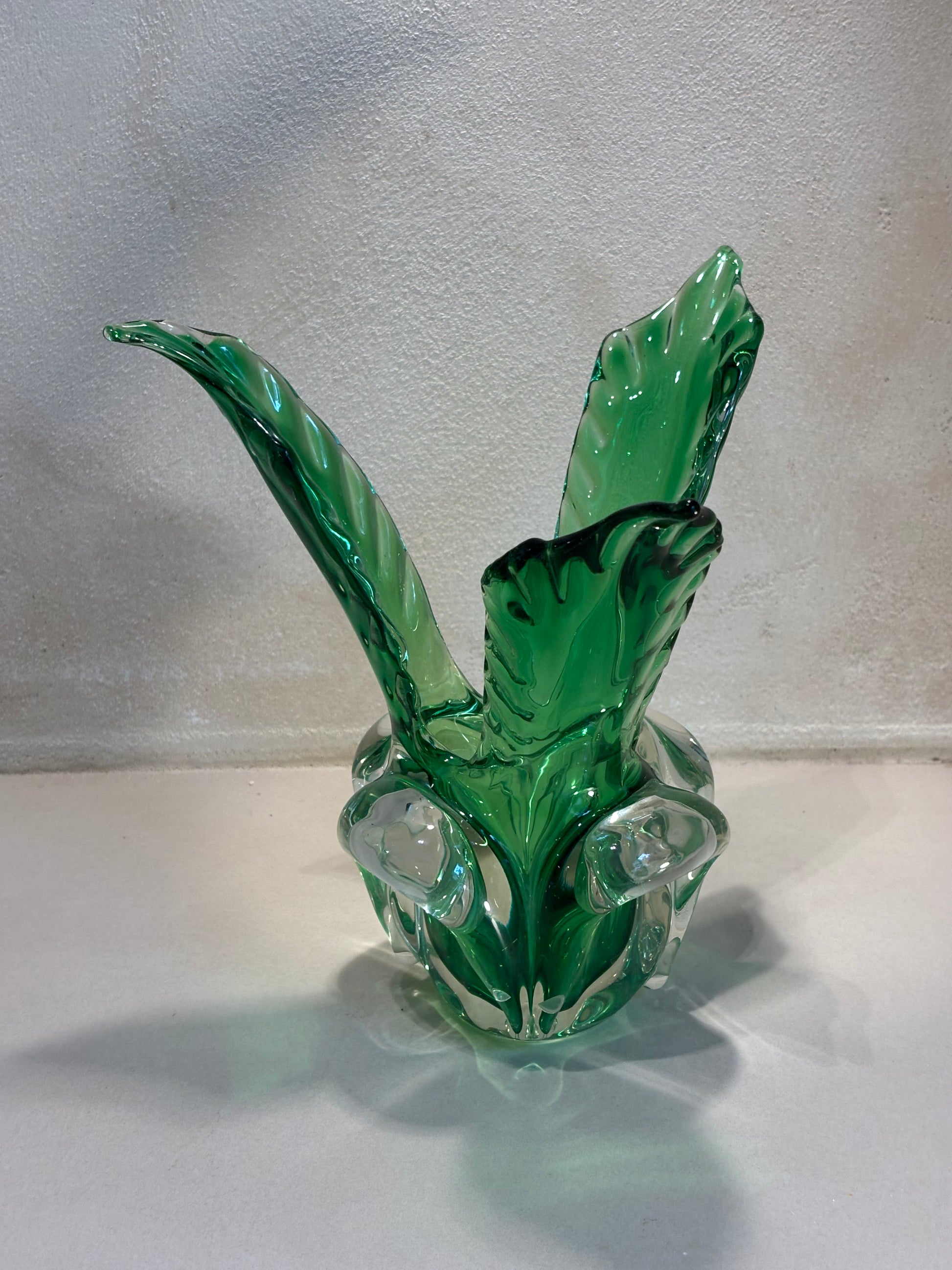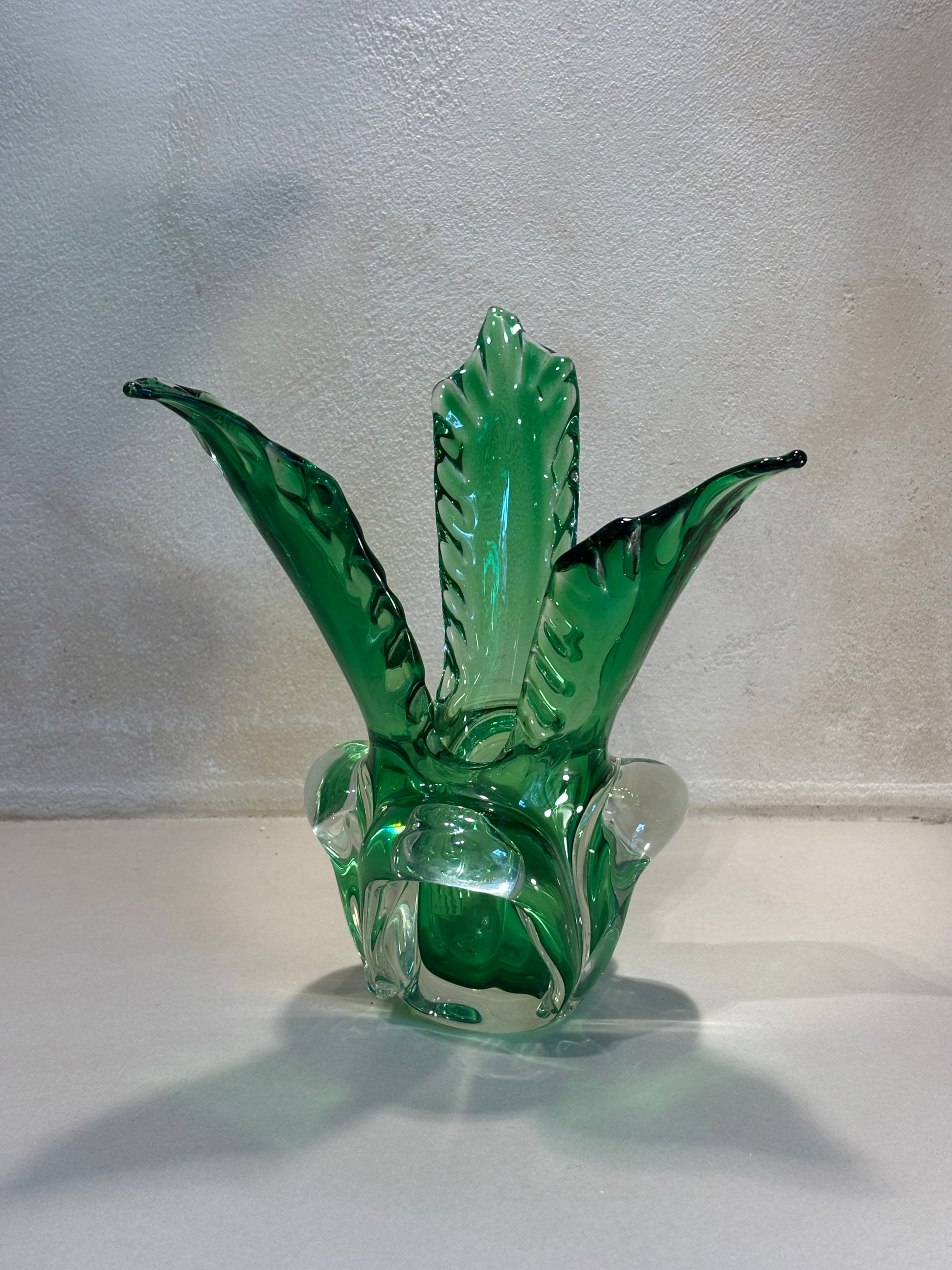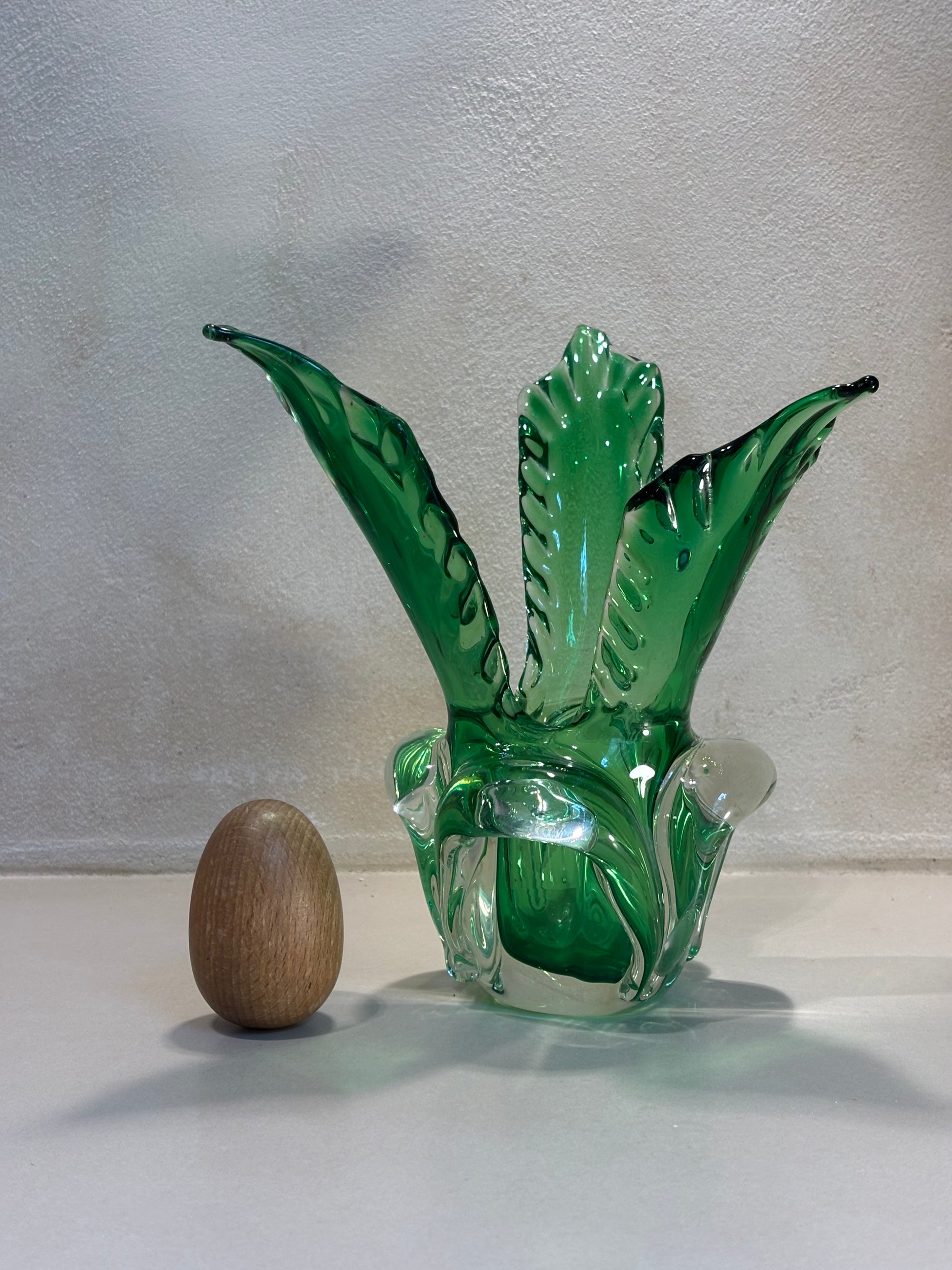 Jarrón realizado en vidrio soplado, hacia la década de 1940 en los talleres de la desaparecida fábrica FONT DEL VIDRE de Mataró (Barcelona), una de las manufacturas más destacadas del vidrio artístico catalán del siglo XX.