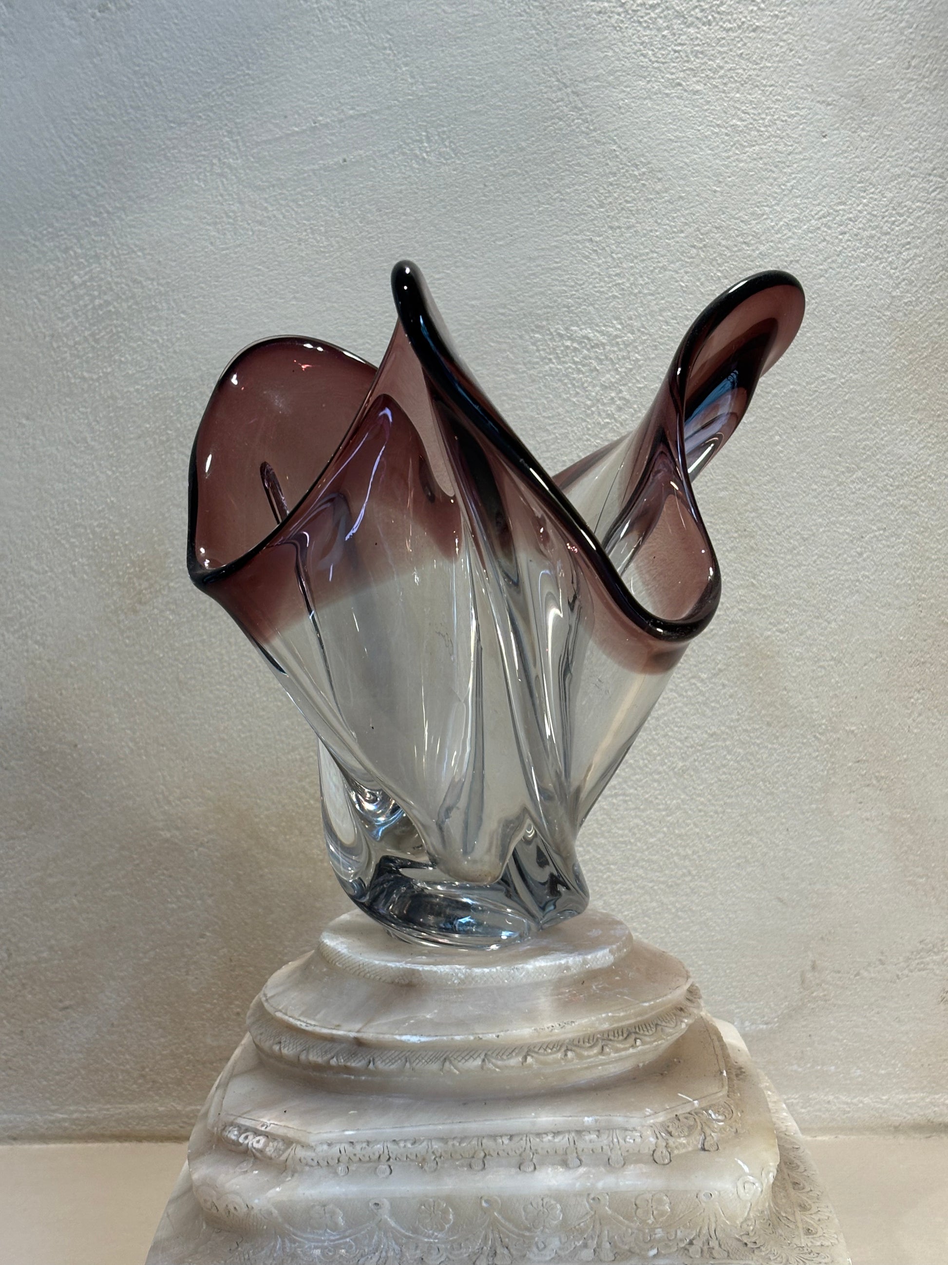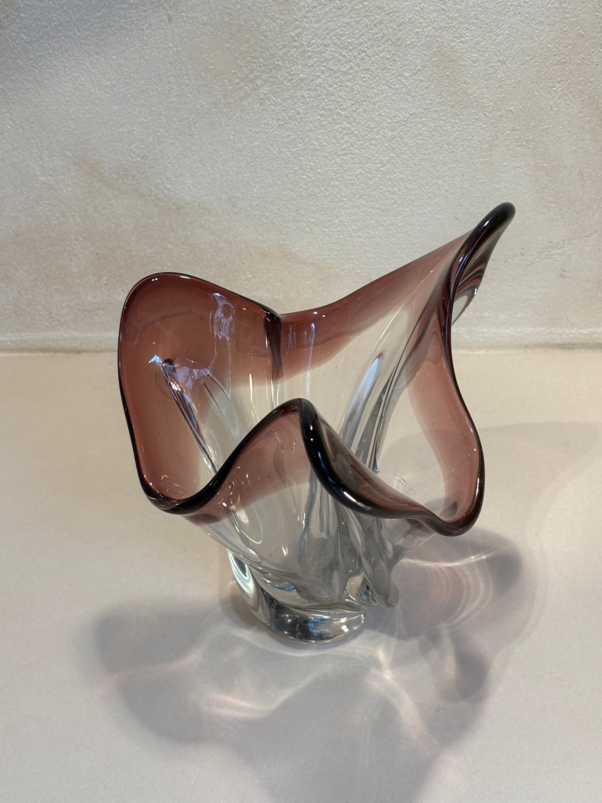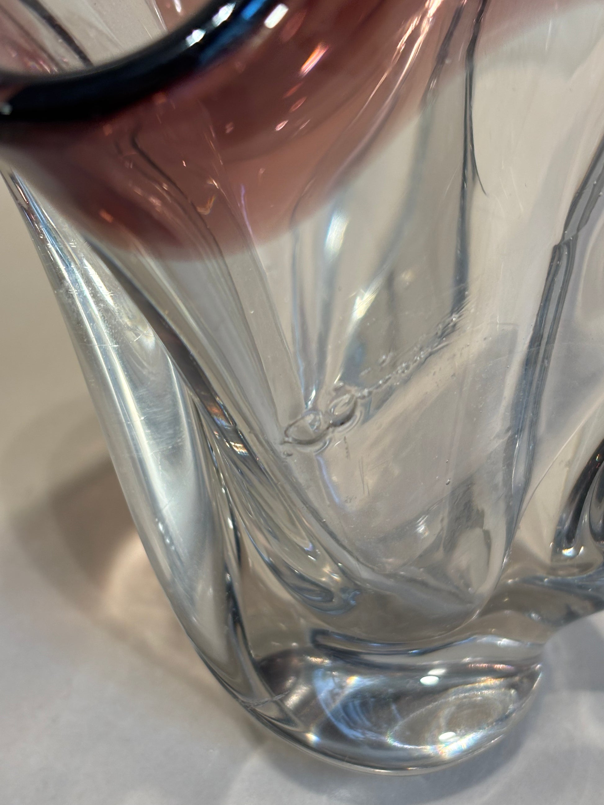 Jarrón en vidrio soplado, hacia la década de 1940 en los talleres de la desaparecida fábrica FONT DEL VIDRE de Mataró (Barcelona), una de las manufacturas más destacadas del vidrio artístico catalán del siglo XX.