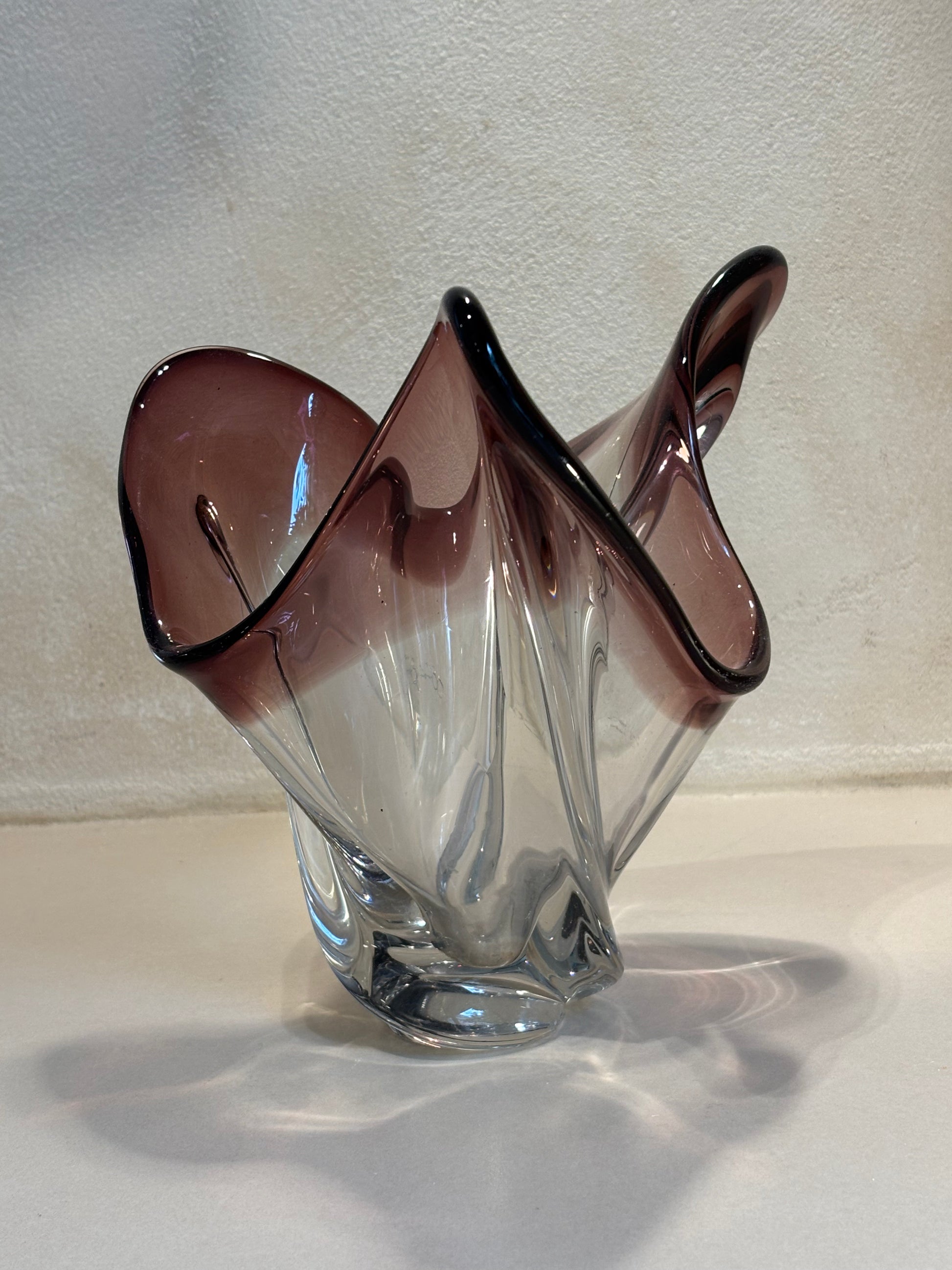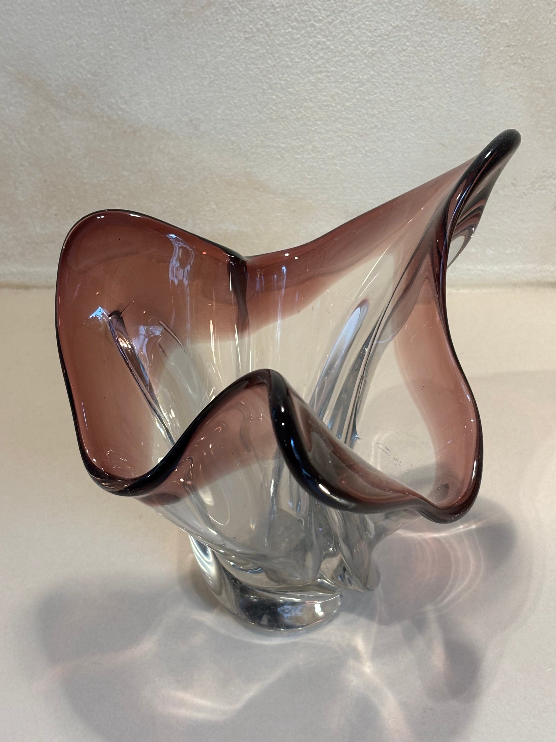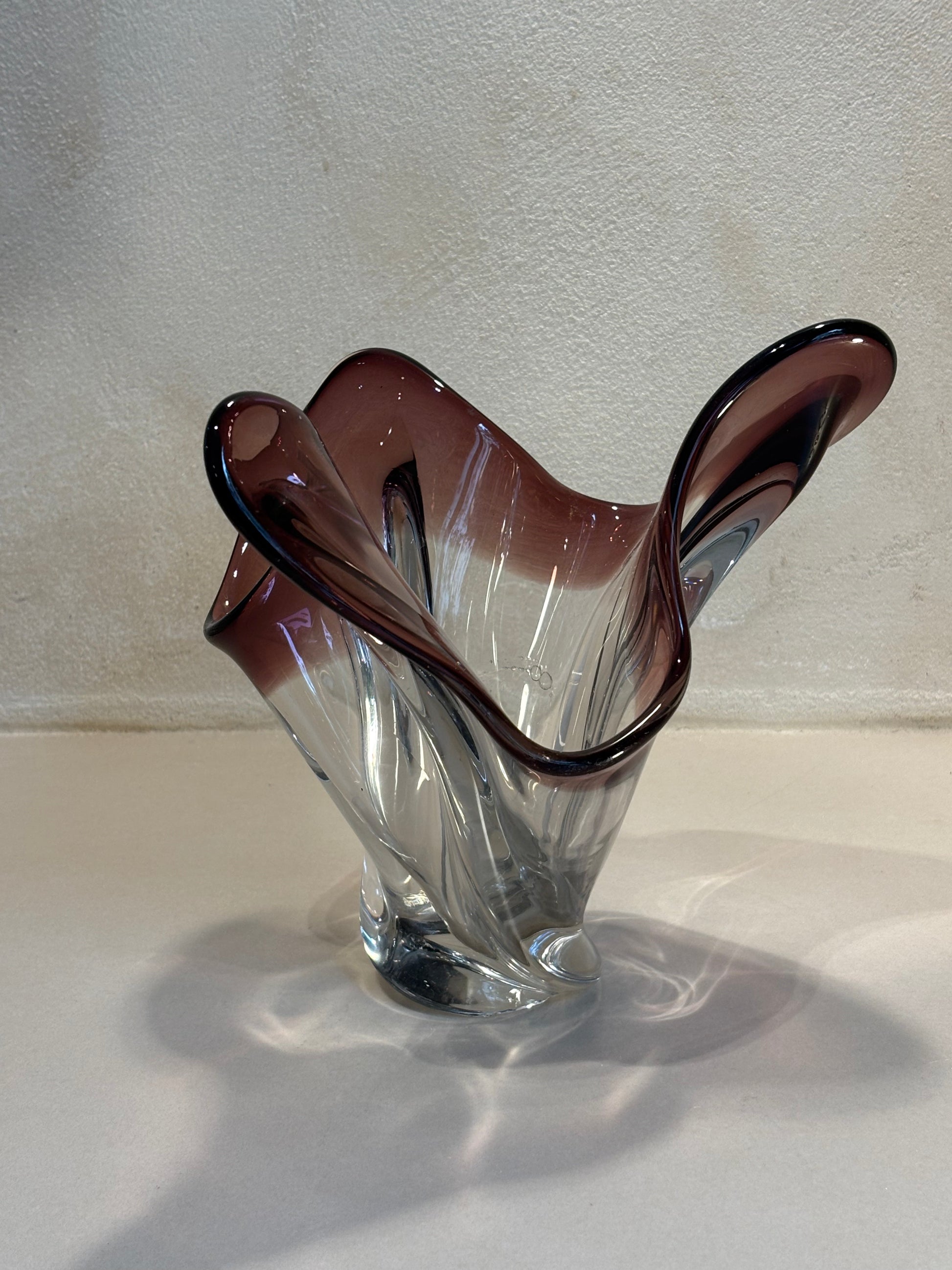 Jarrón en vidrio soplado, hacia la década de 1940 en los talleres de la desaparecida fábrica FONT DEL VIDRE de Mataró (Barcelona), una de las manufacturas más destacadas del vidrio artístico catalán del siglo XX.
