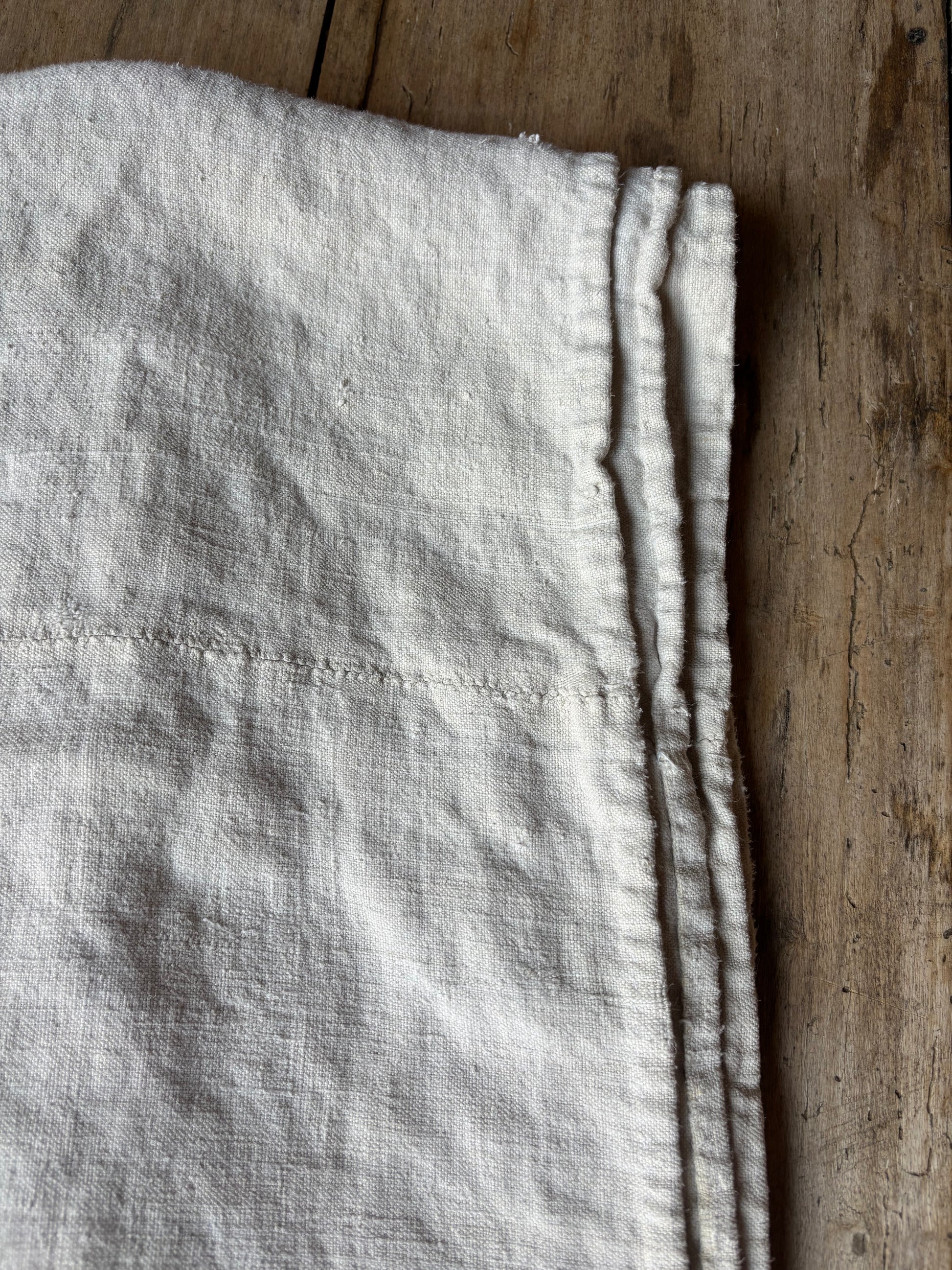 MANTEL LINO GRUESO ANTIGUO BORDADO A MANO.