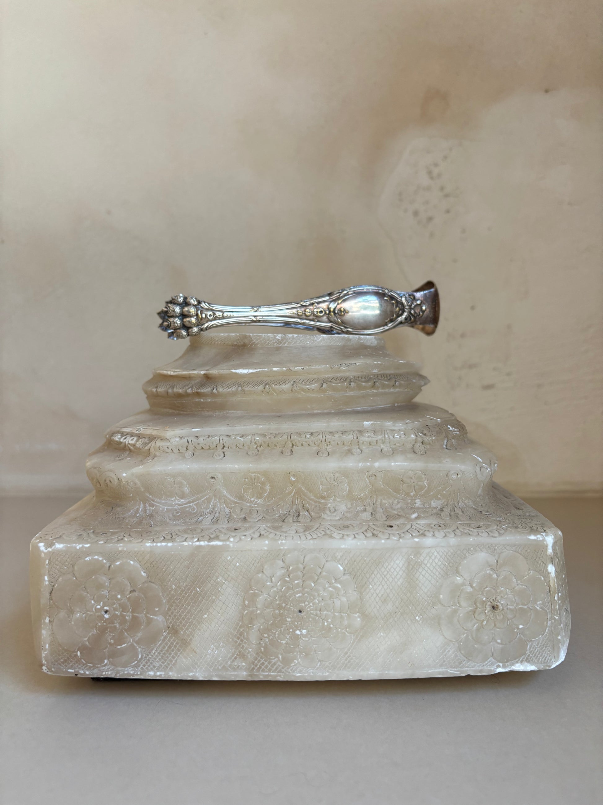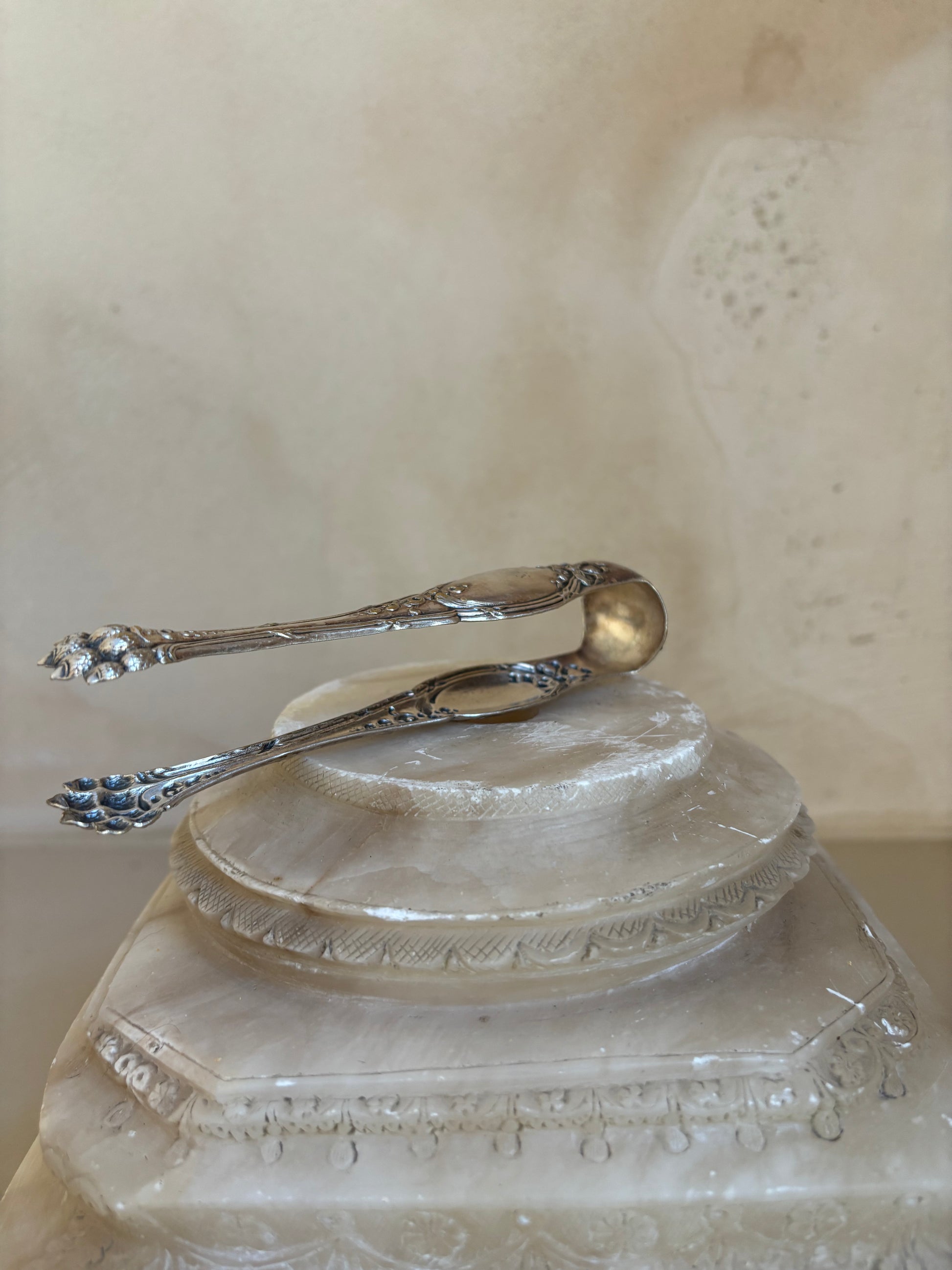 Pinza antigua de alpaca, diseñadas especialmente para cubiteras, propias del siglo XX.