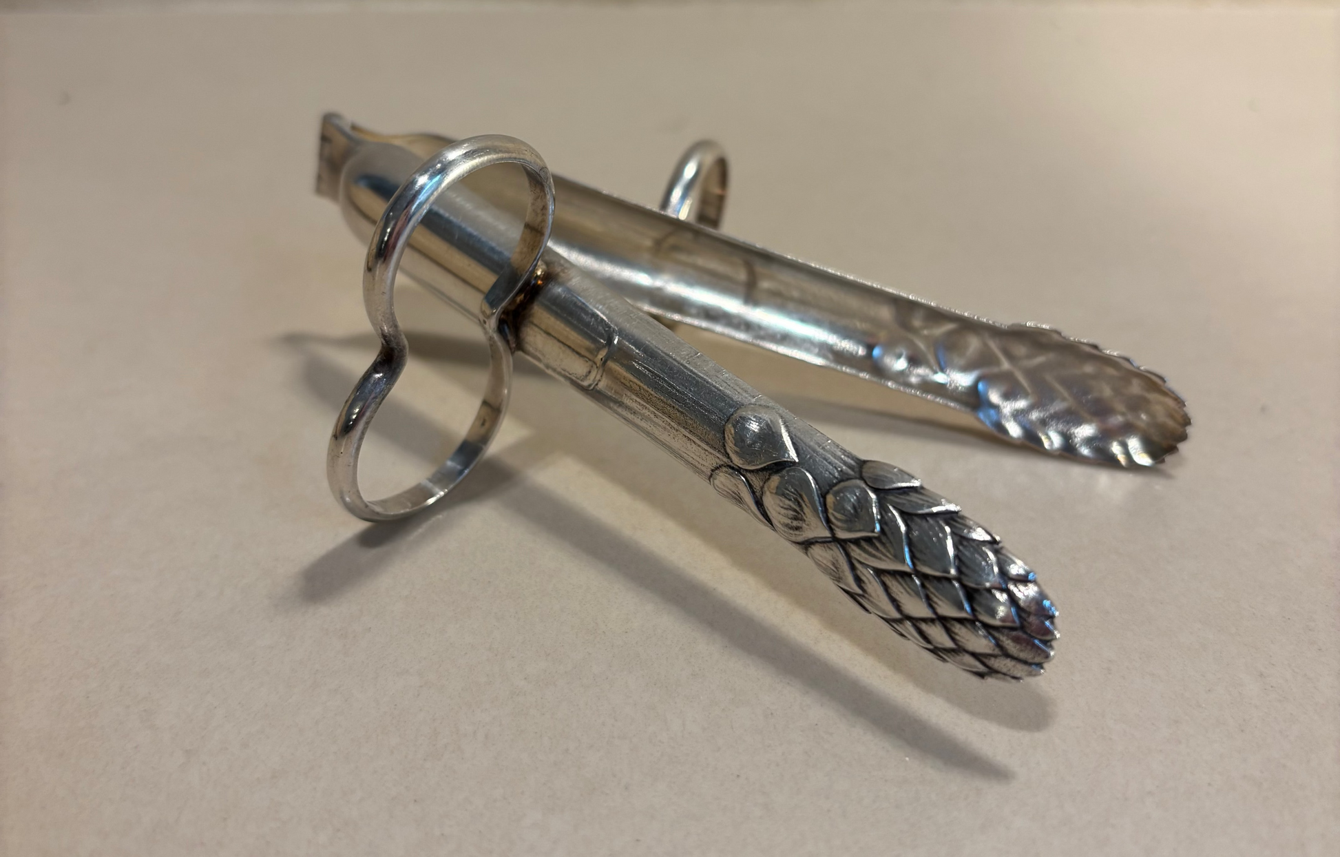 Pinzas individuales para espárragos CHRISTOFLE en alpaca, marca de orfebrerÍa MTL.