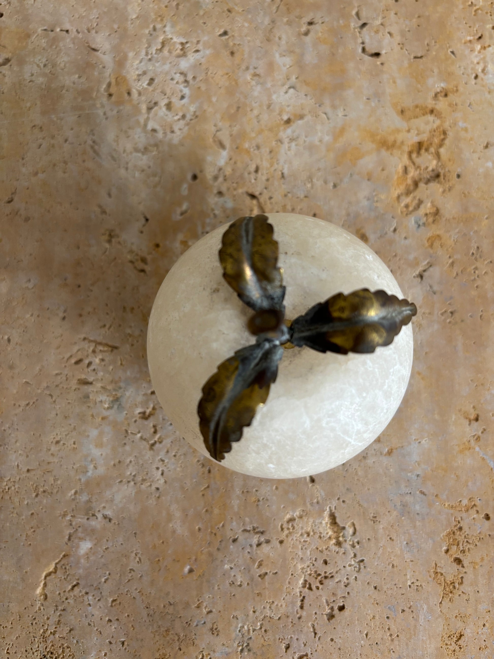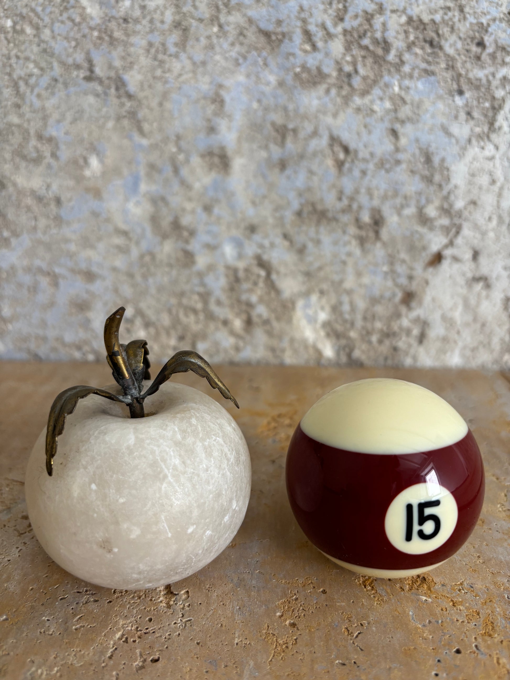 Manzana decorativa en Alabastro y hojas en latón. Se puede utilizar de pisapapeles para recetarios mientras se cocina.