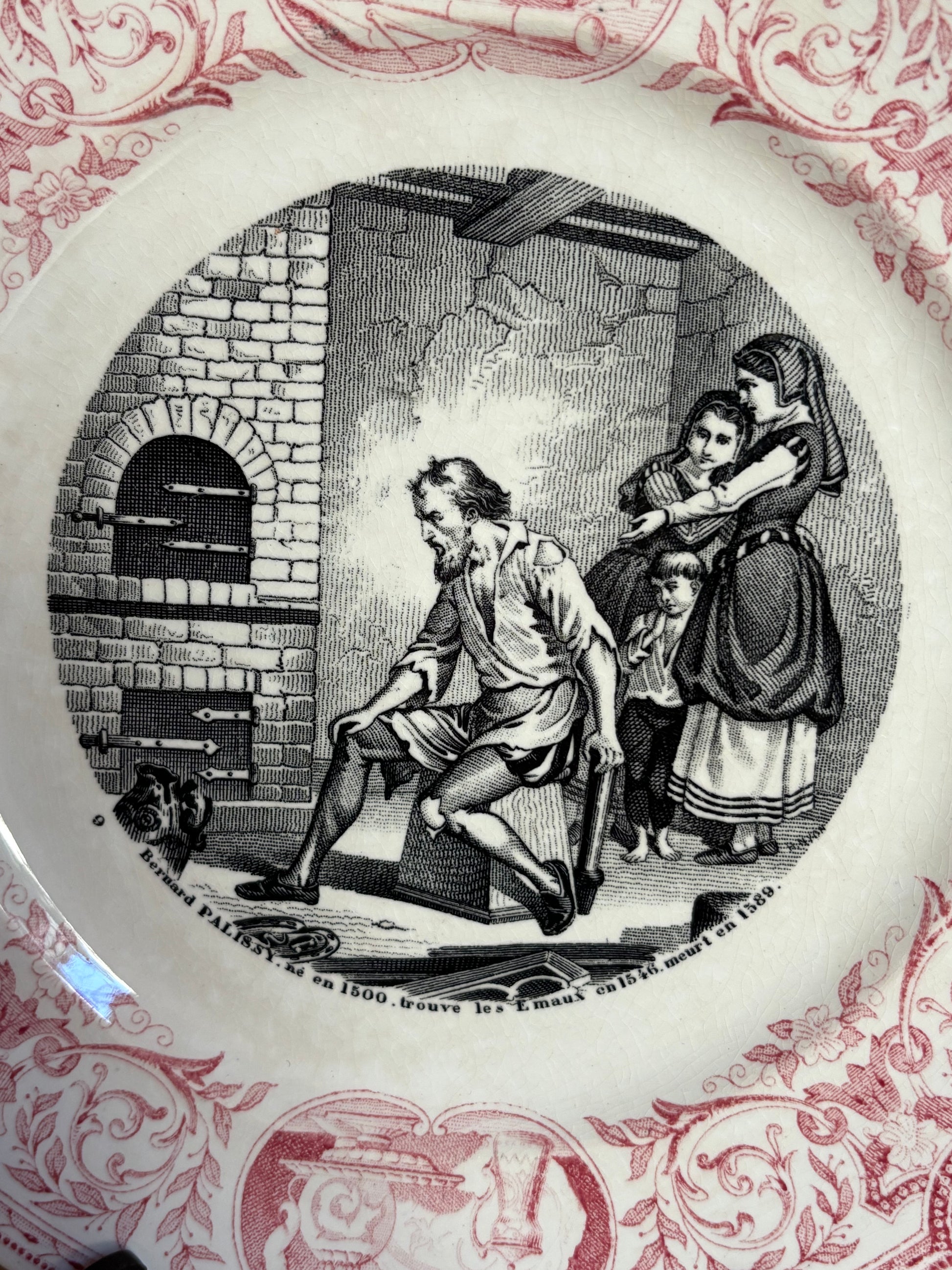 Conjunto de 8 platos parlantes ,forman parte de una colección de 12. "Descubrimientos". Fabricados en porcelana con sello SARREGUEMINES, Francia.