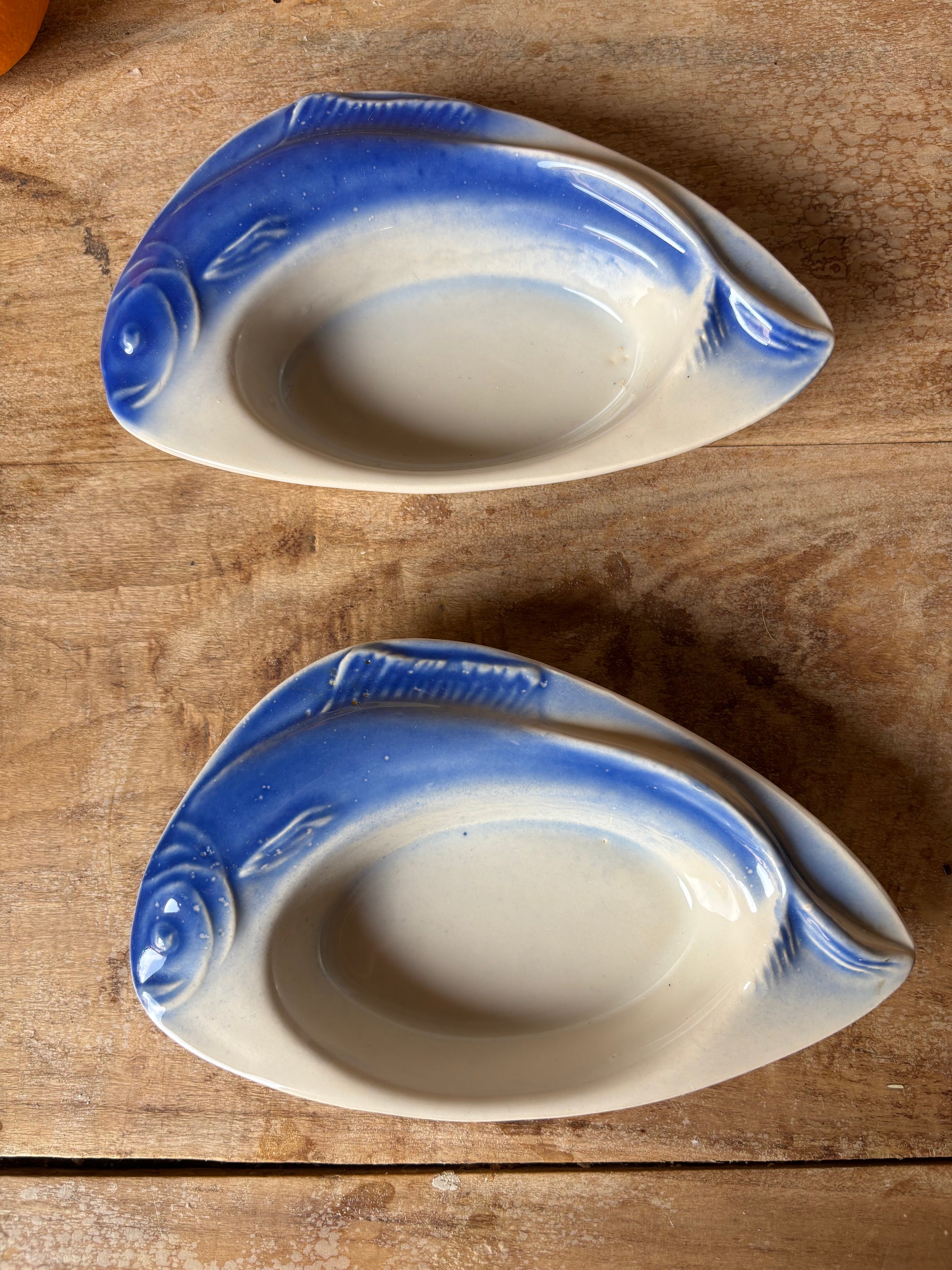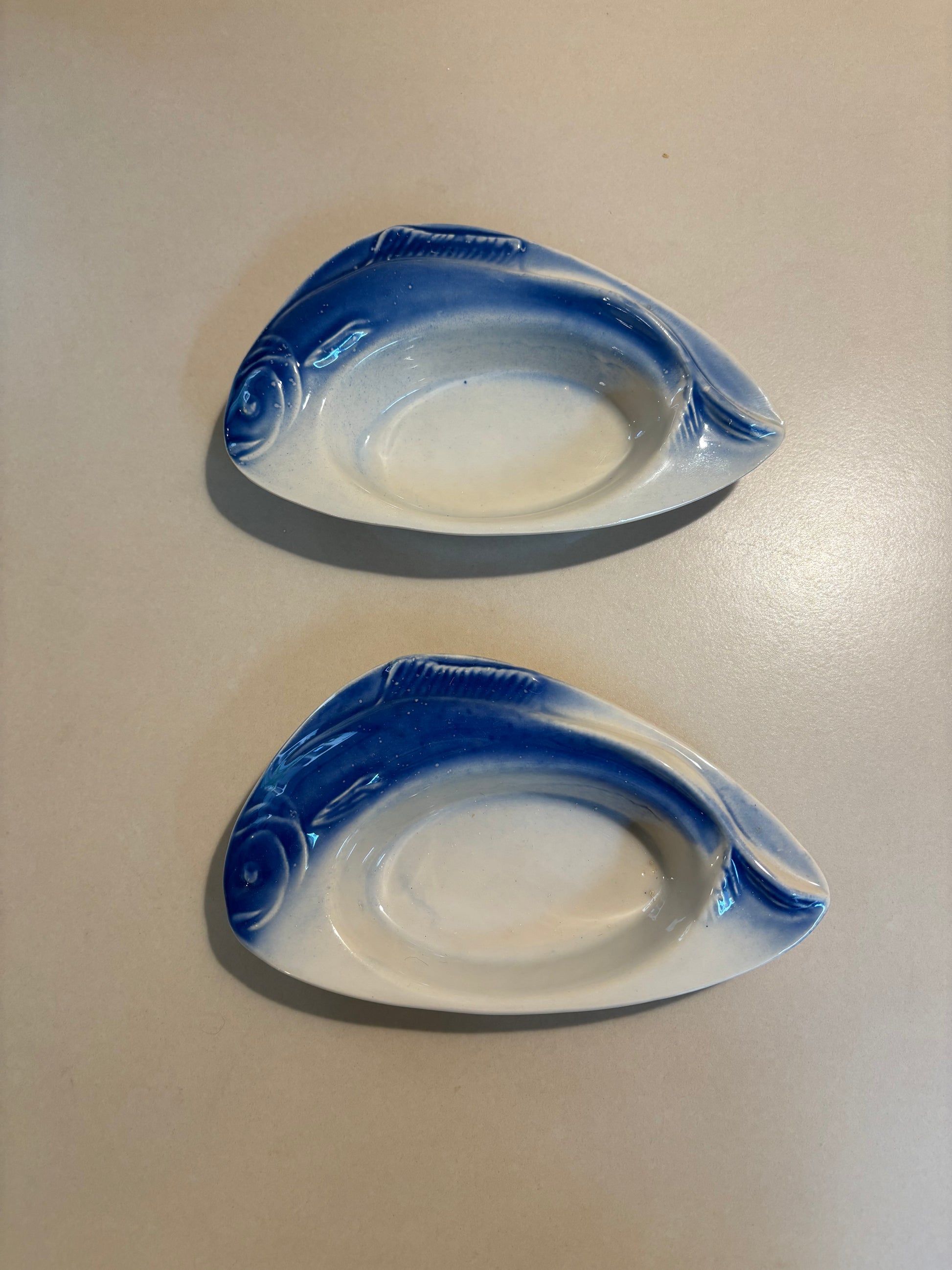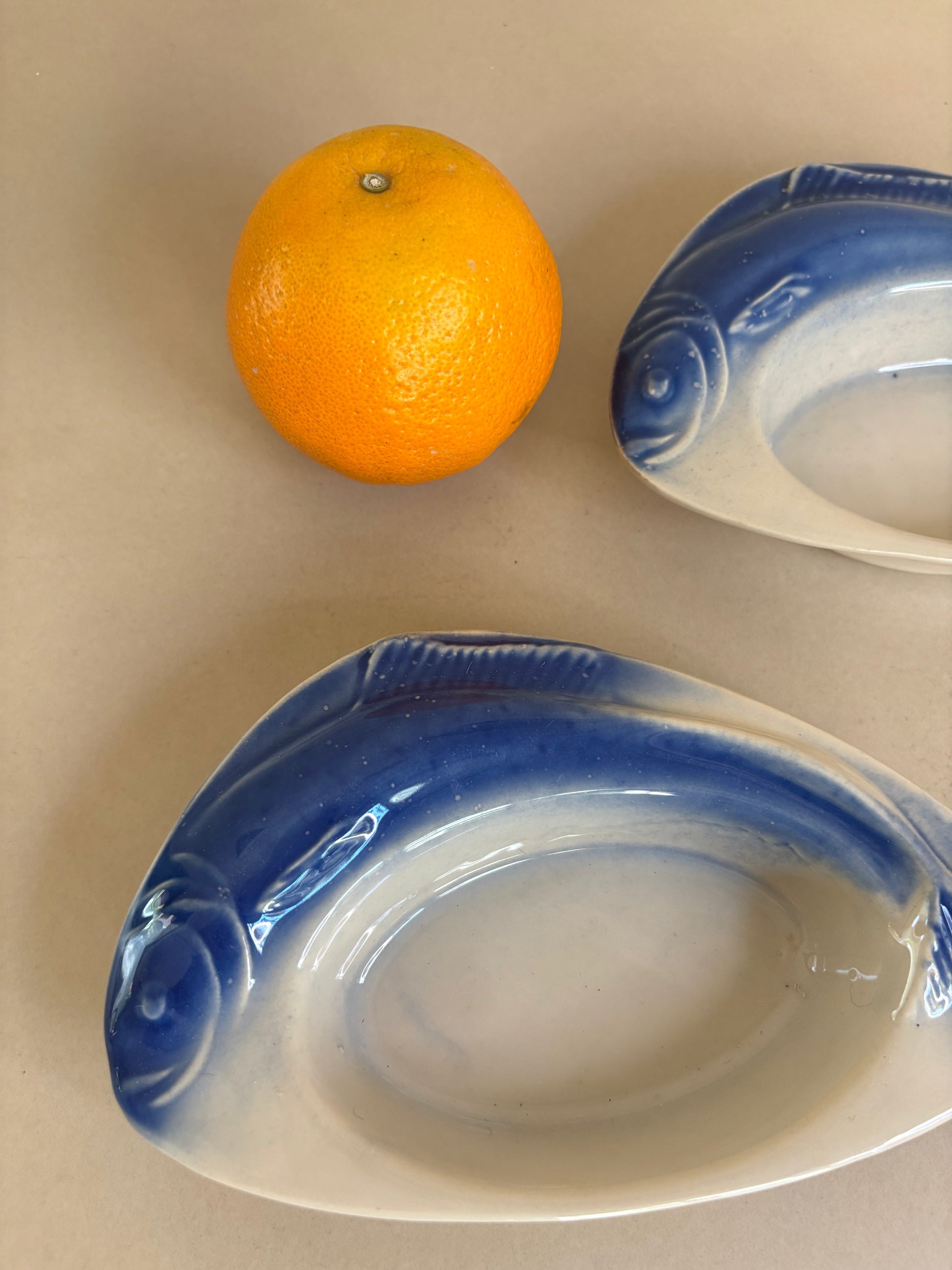 Par de rabaneras vintage de los años 60. En cerámica barbotine, para entrantes fríos o calientes (aptos para horno). Firmados por Charles Armand.