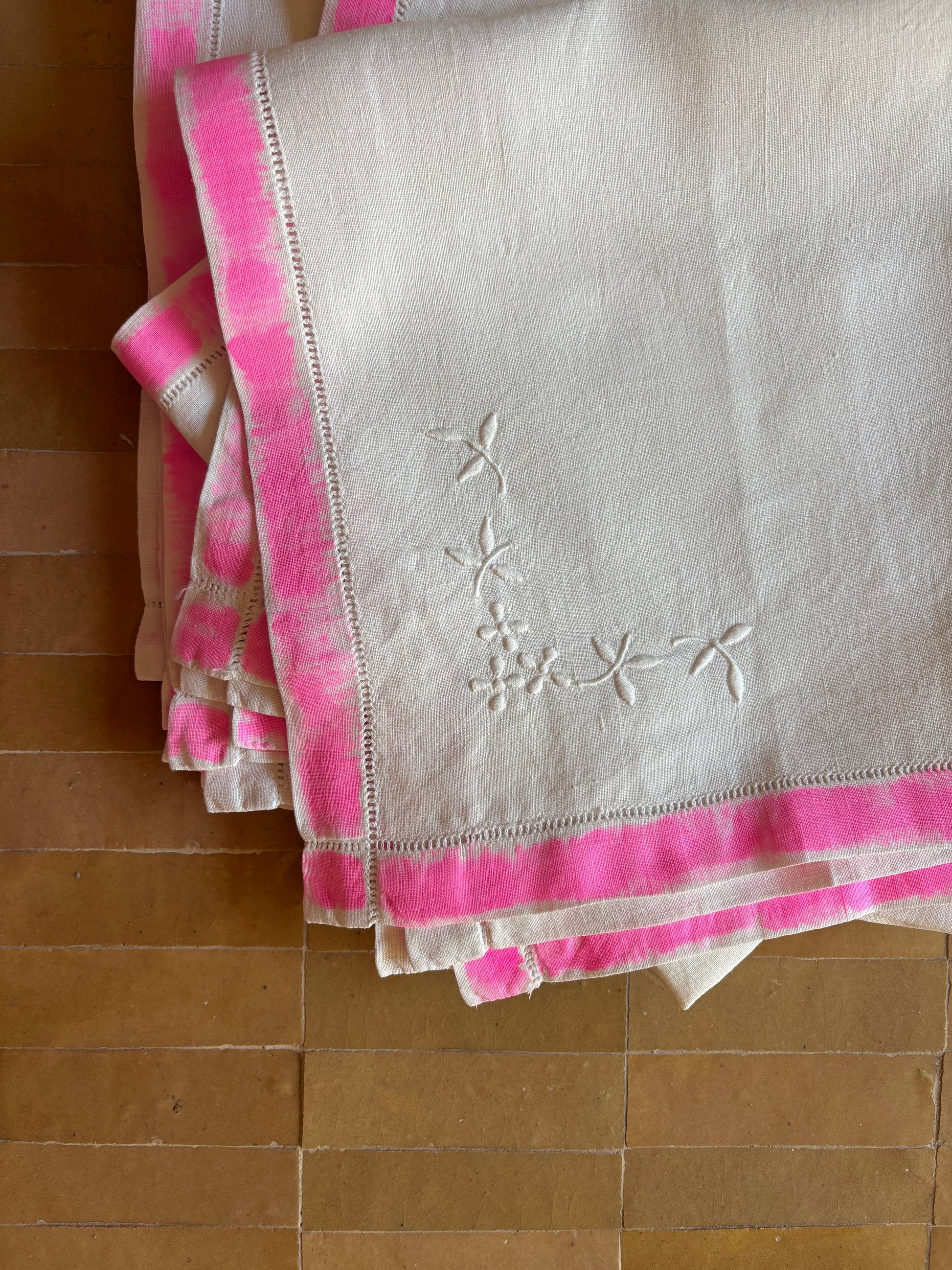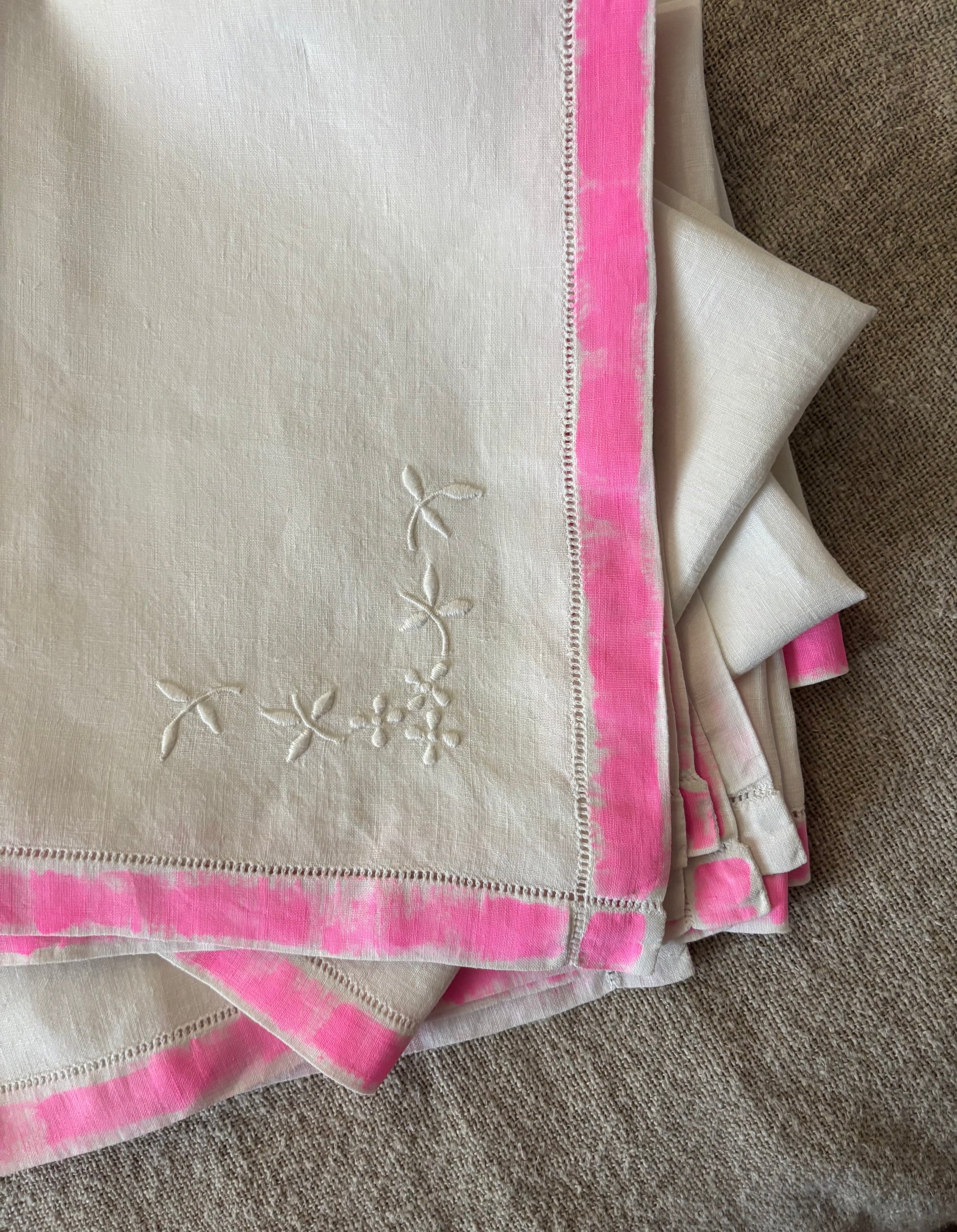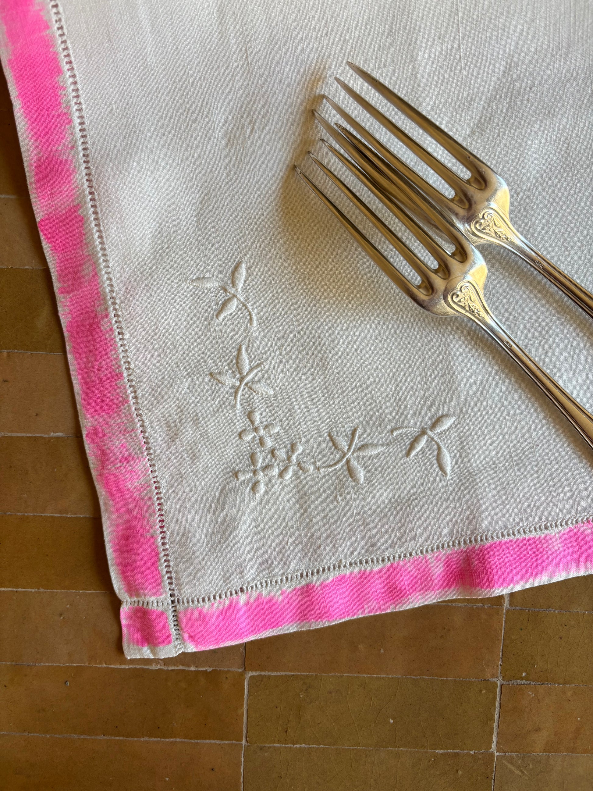 Jeudi à table ha customizado estas servilletas, pintando todo el borde en un rosa flúor.