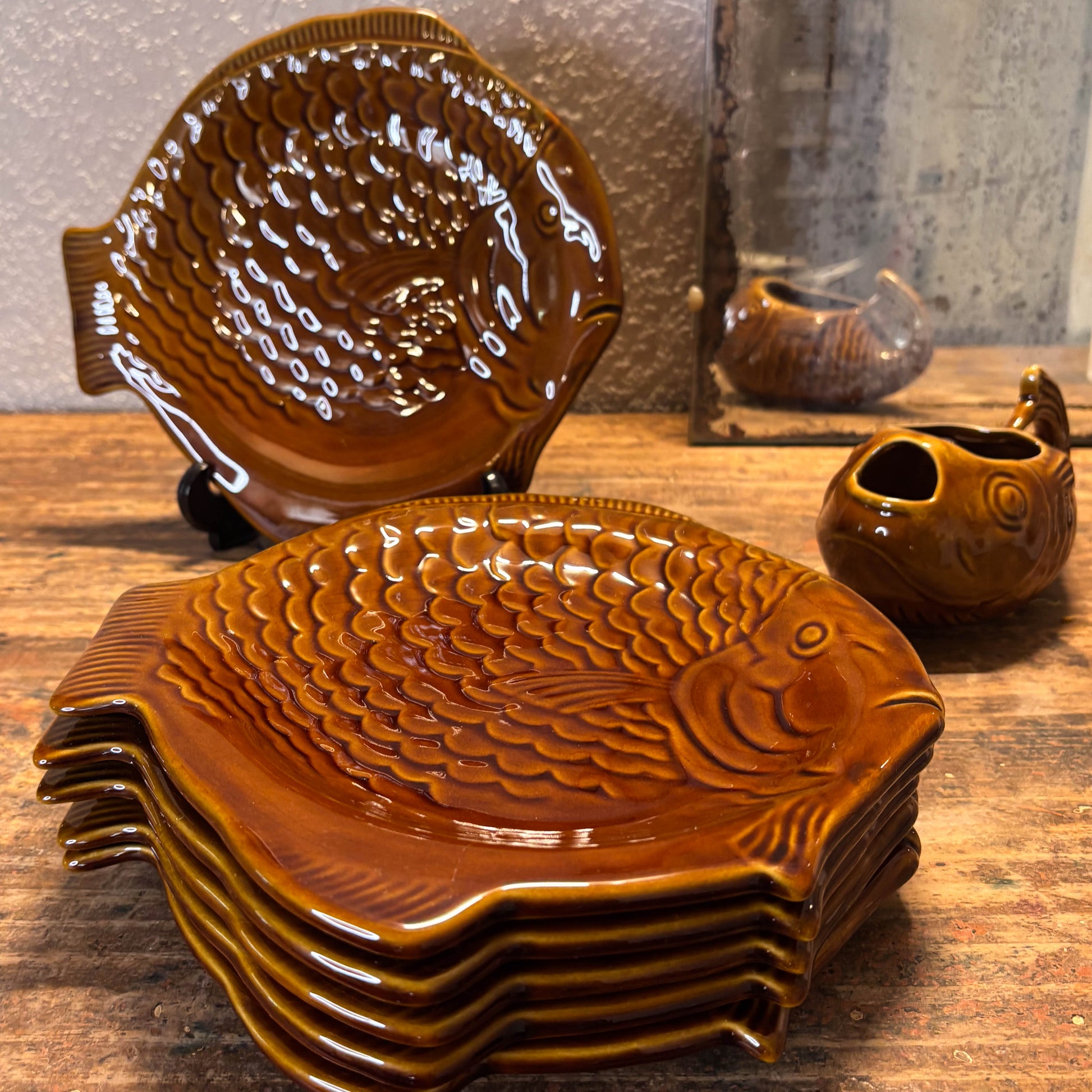 6 platos de cerámica vintage en forma de pez, de la fábrica Vargas (1861-1992), Segovia, España.