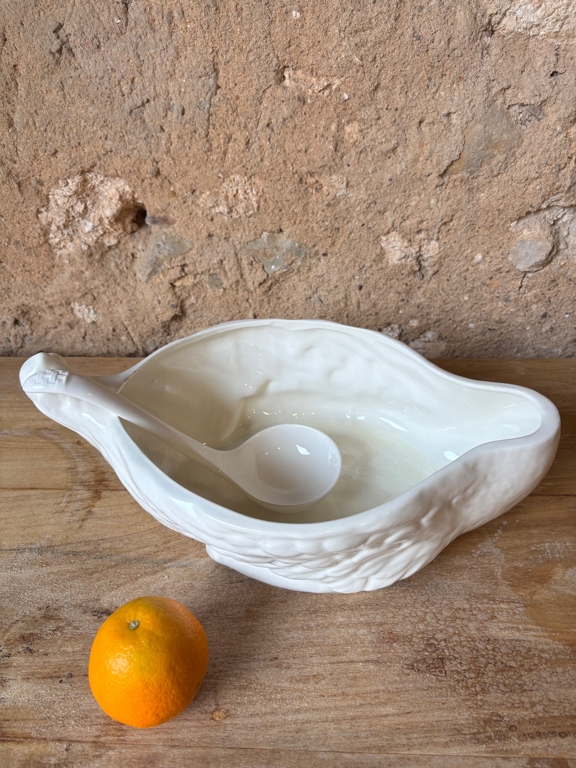 Sopera vintage gran tamaño, en forma de cisne de cerámica esmaltada.